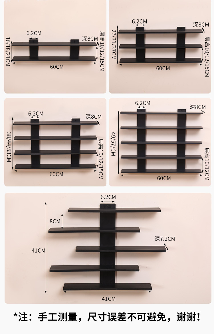 • 두 번째 레이어는 길이 60cm, 각 레이어 높이는 15cm입니다. 검정색 [손톱 포함/벽에 걸 수 있음]