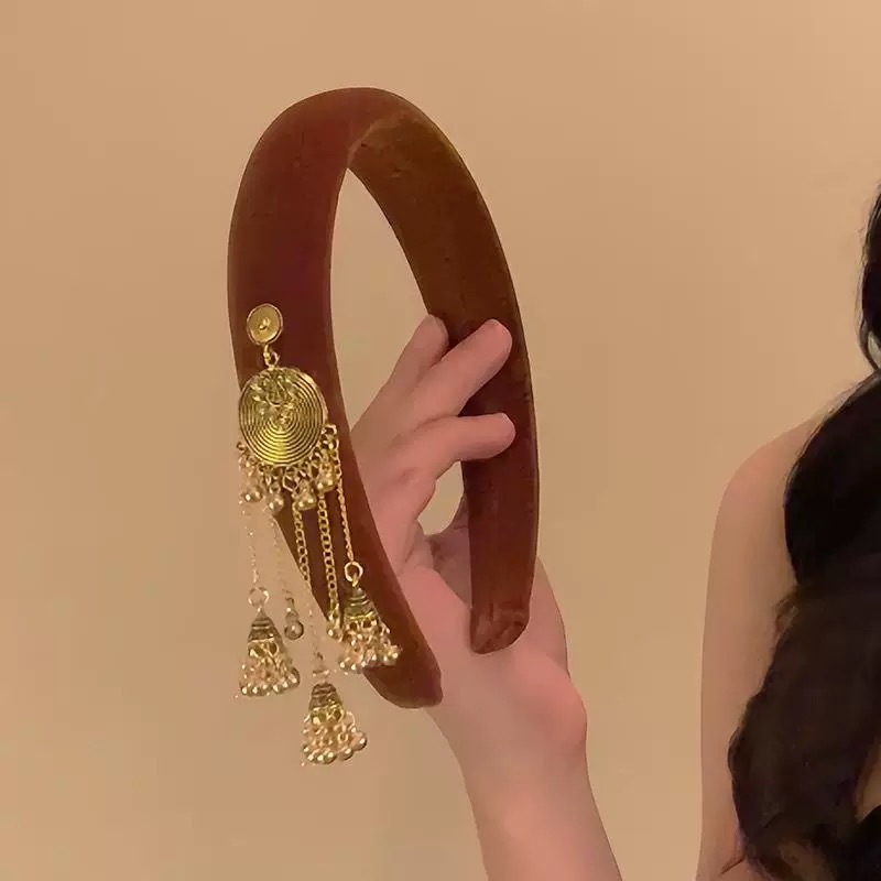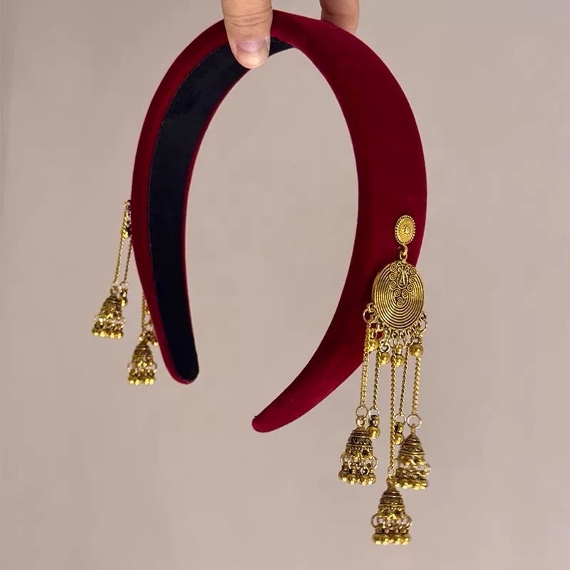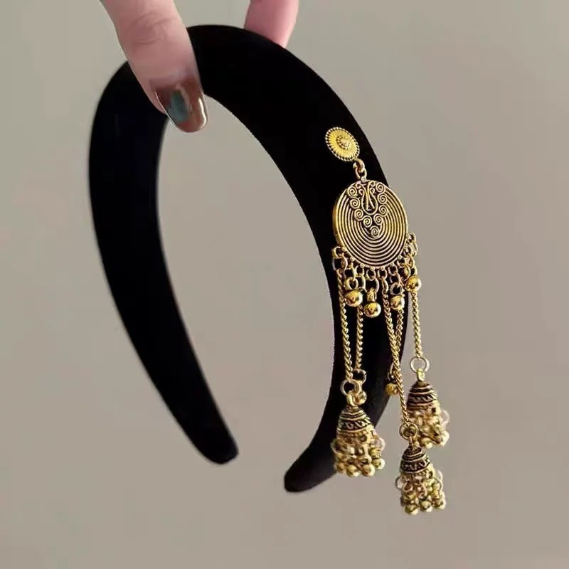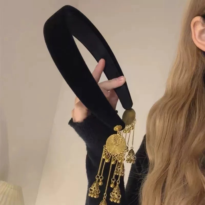 Miao 민족 스타일 블랙 벨벳 헤어 밴드 하이 엔드 하이 크리 얼 탑 헤드 밴드 헤어 액세서리 여성 헤어핀 국가 스타일 새로운 중국 스타일 머리 장식스토어 가기