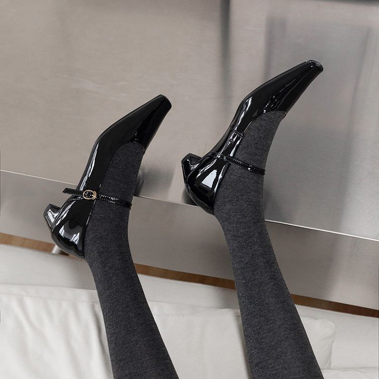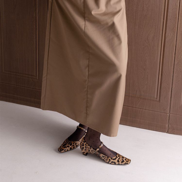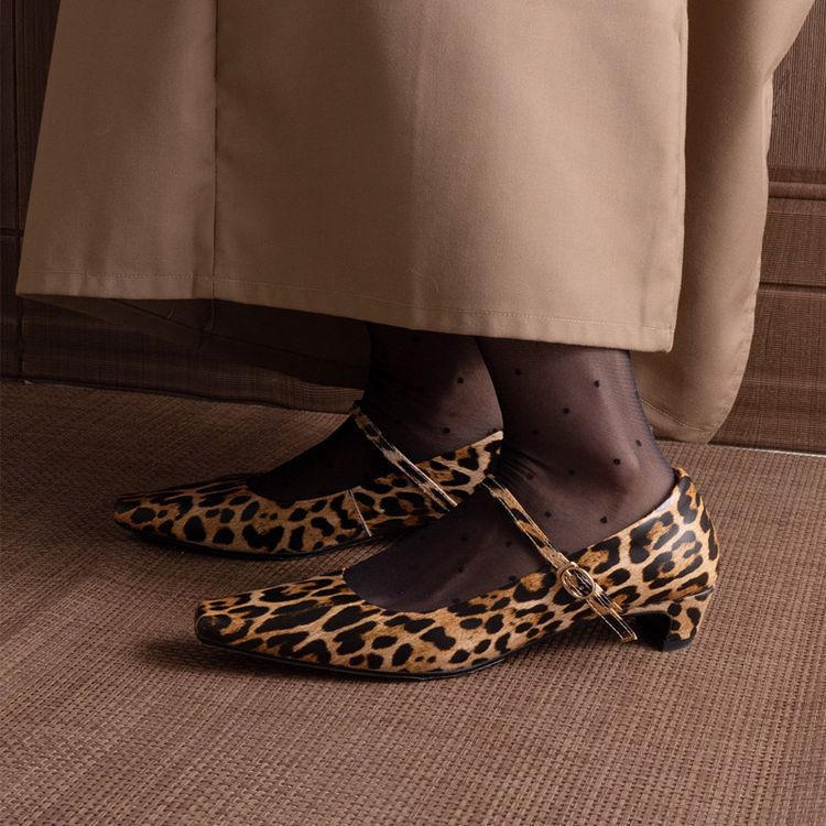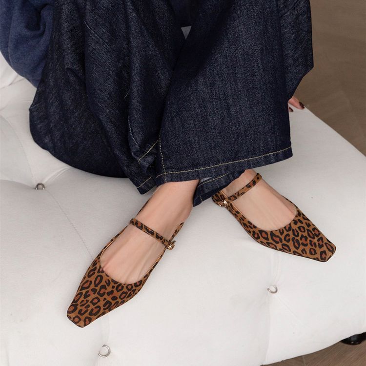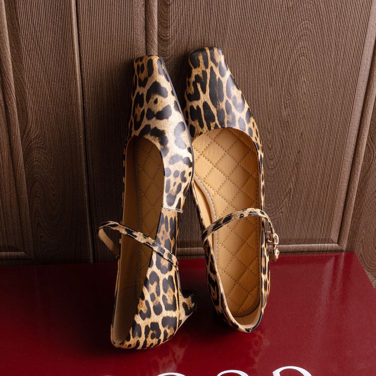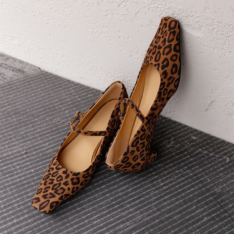 고양이 힐 스퀘어 발가락 레오파드 무늬 메리 제인 신발 여성 미드 힐 신발 2025 봄 새로운 정품 가죽 싱글 라인 얕은 입 신발스토어 가기