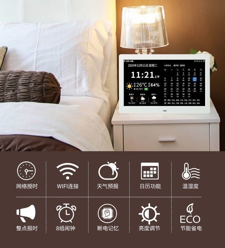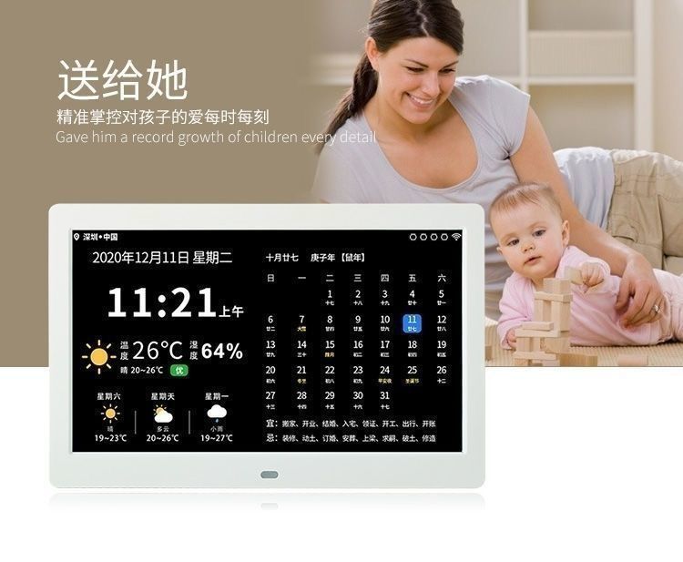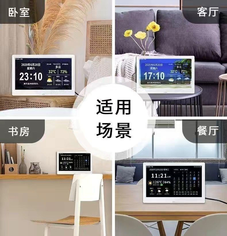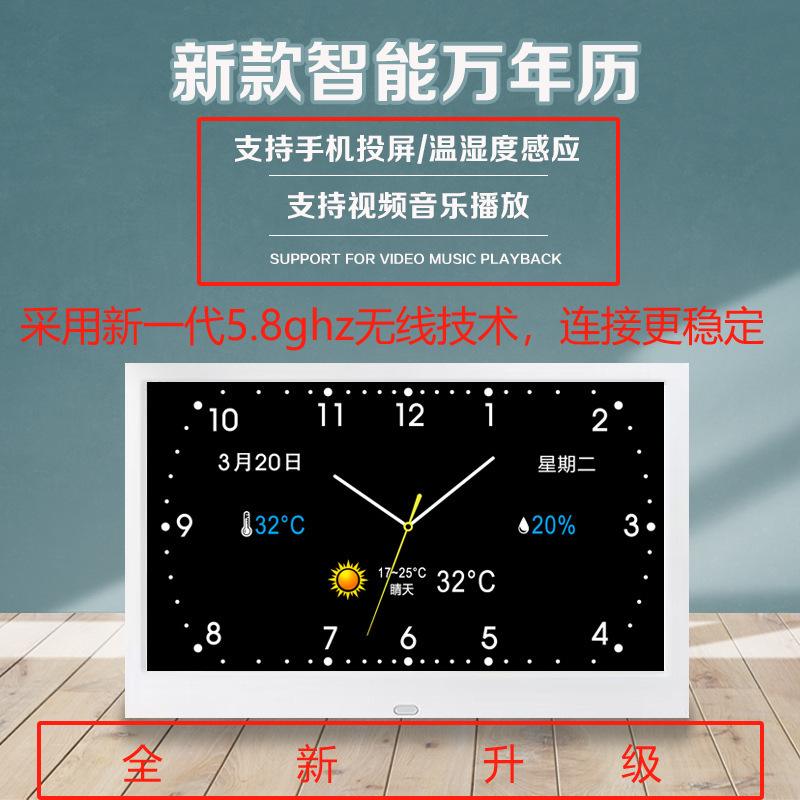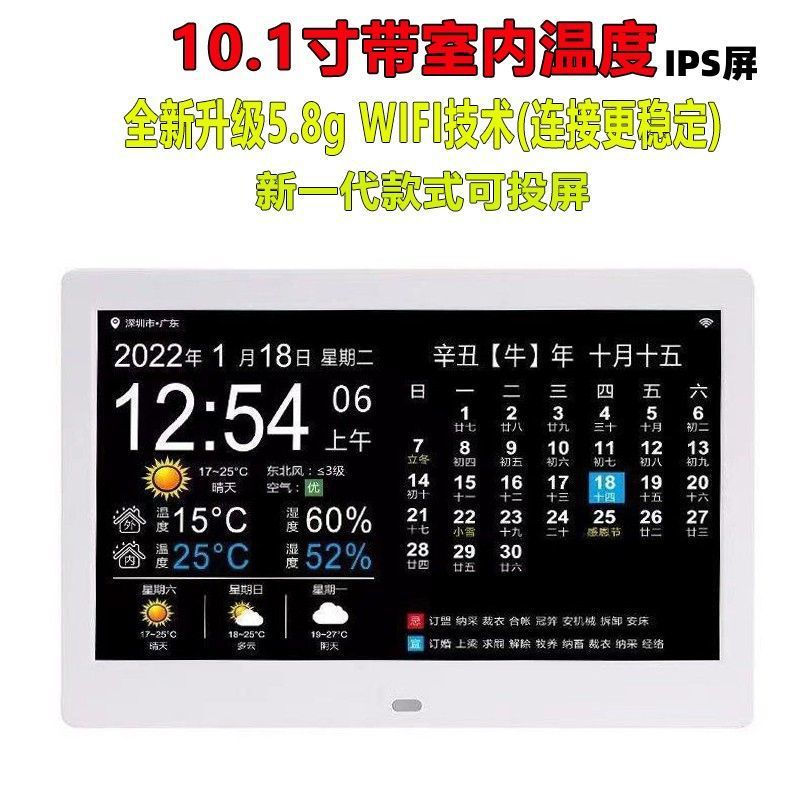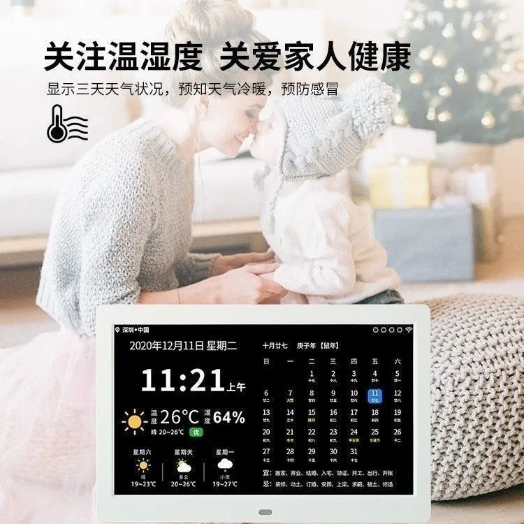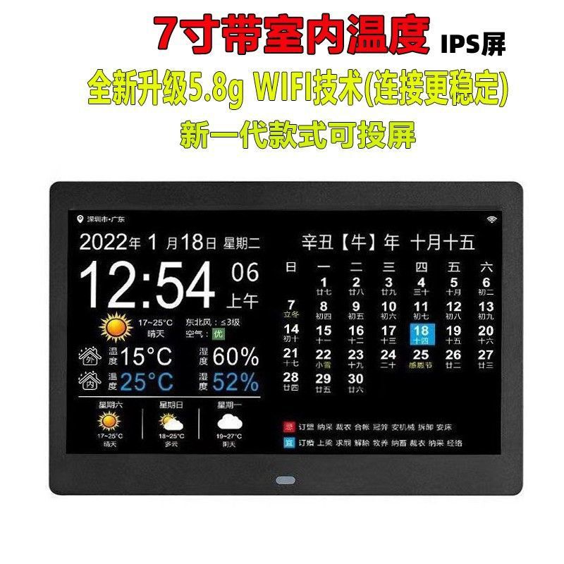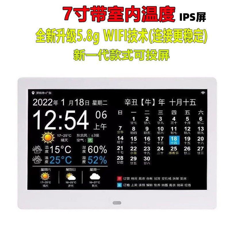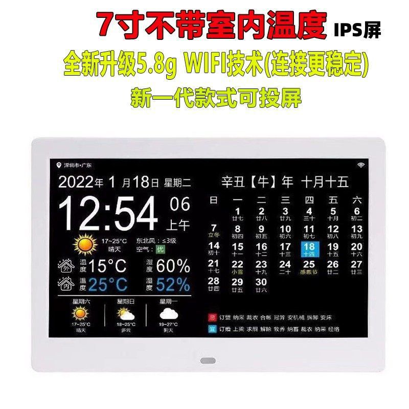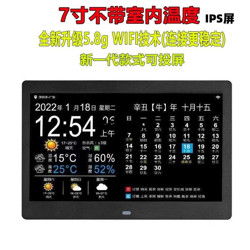 스마트 와이파이 전자 영구 달력 시계 벽에 장착 알람 시계 일기 예보 데스크탑 새로운 장식품 달력 HF스토어 가기