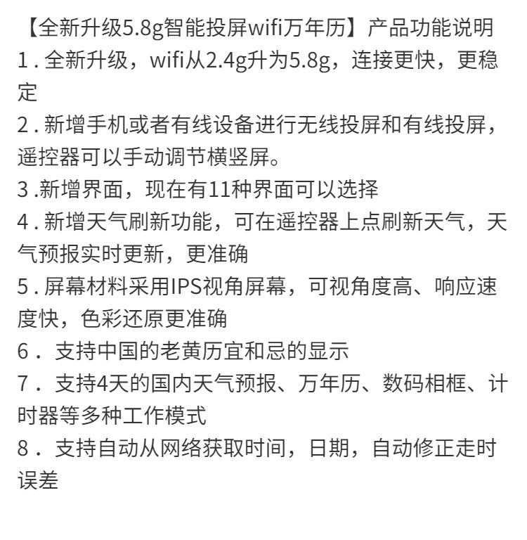 • 새로운 무선 업그레이드 모델 [실내 온도 7inch 포함] 화면에 투사 가능