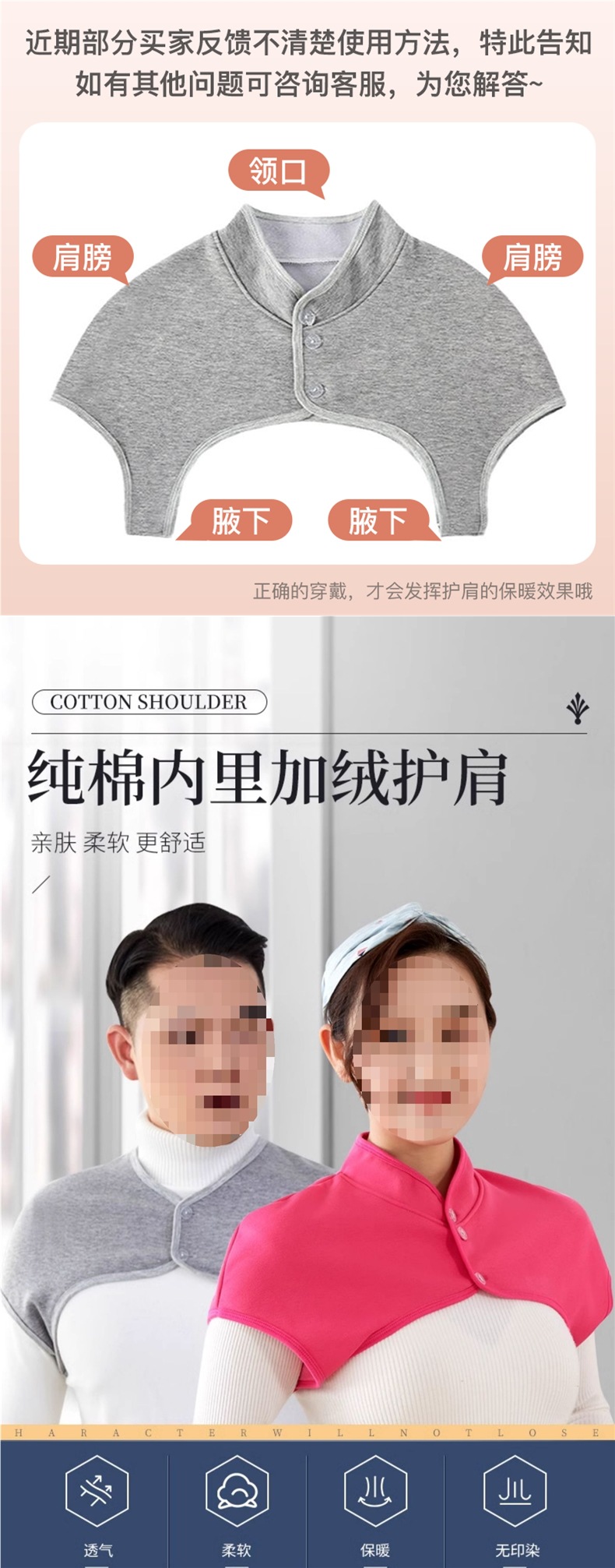 어깨 패드 자궁 경부 척추 양복 조끼 수면 냉증 어깨 둘레 따뜻한 어깨 보호 순수한면 남성과 여성 중년 및 노인 사계절 목도리
