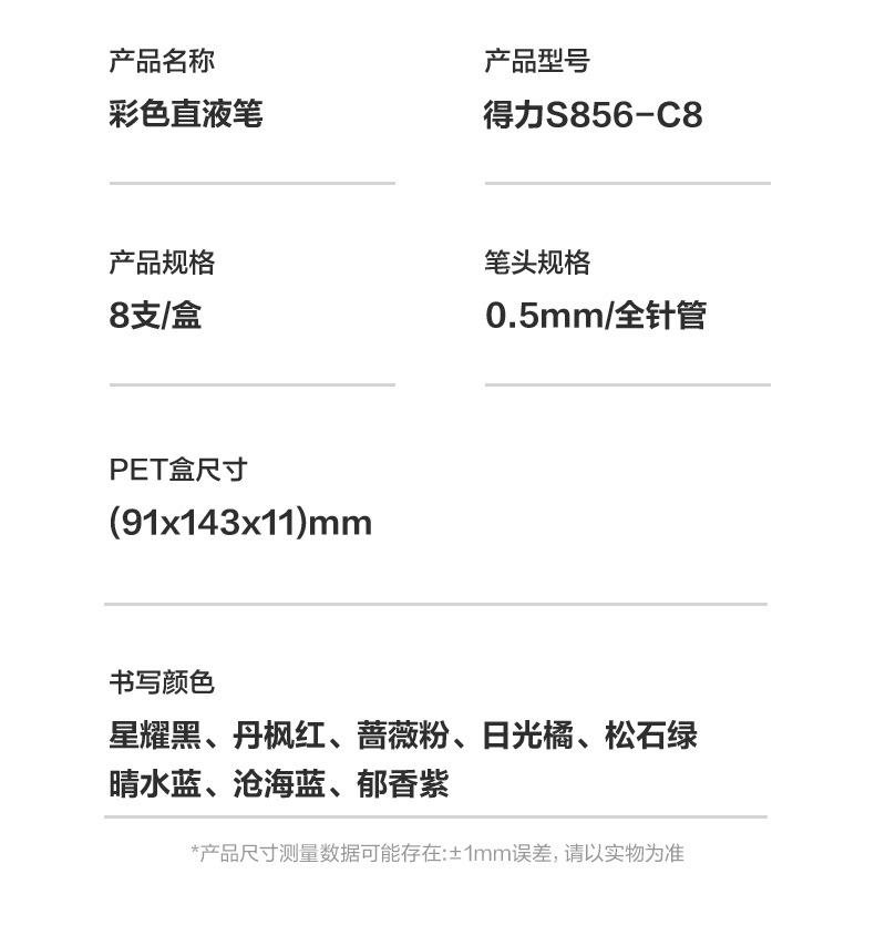 • S856-C8 컬러 스트레이트 액상 볼펜 0.5mm 풀 니들 튜브(혼합)(8개/박스)