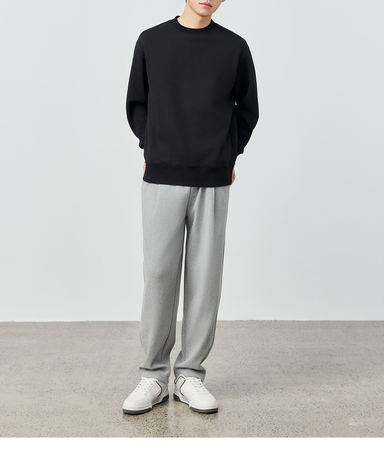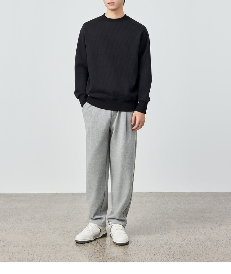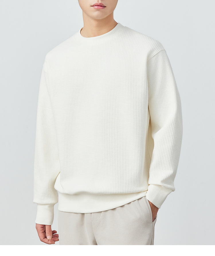 Mimaike 남자 320g 와플 질감 스웨터 남자 2025 봄 새로운 라운드 넥 남자 스웨터 55496