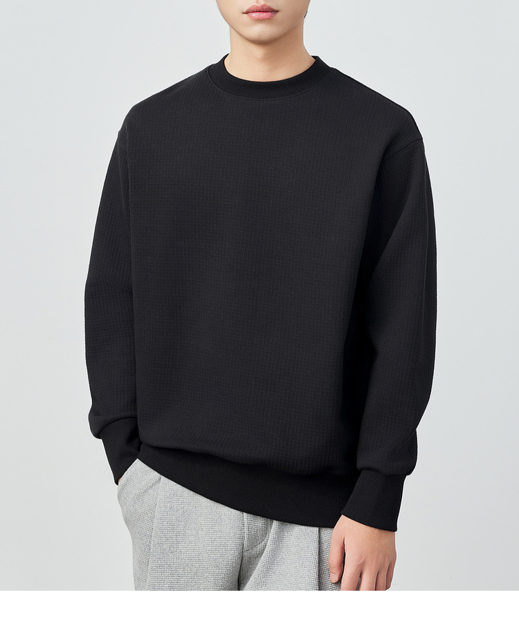 Mimaike 남자 320g 와플 질감 스웨터 남자 2025 봄 새로운 라운드 넥 남자 스웨터 55496스토어 가기