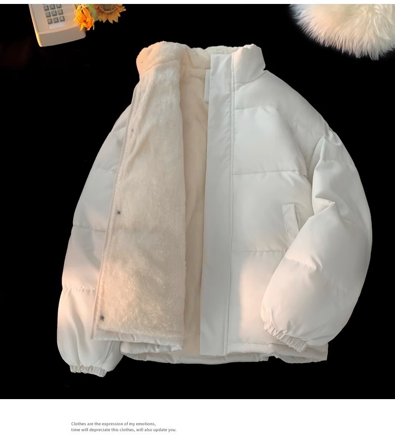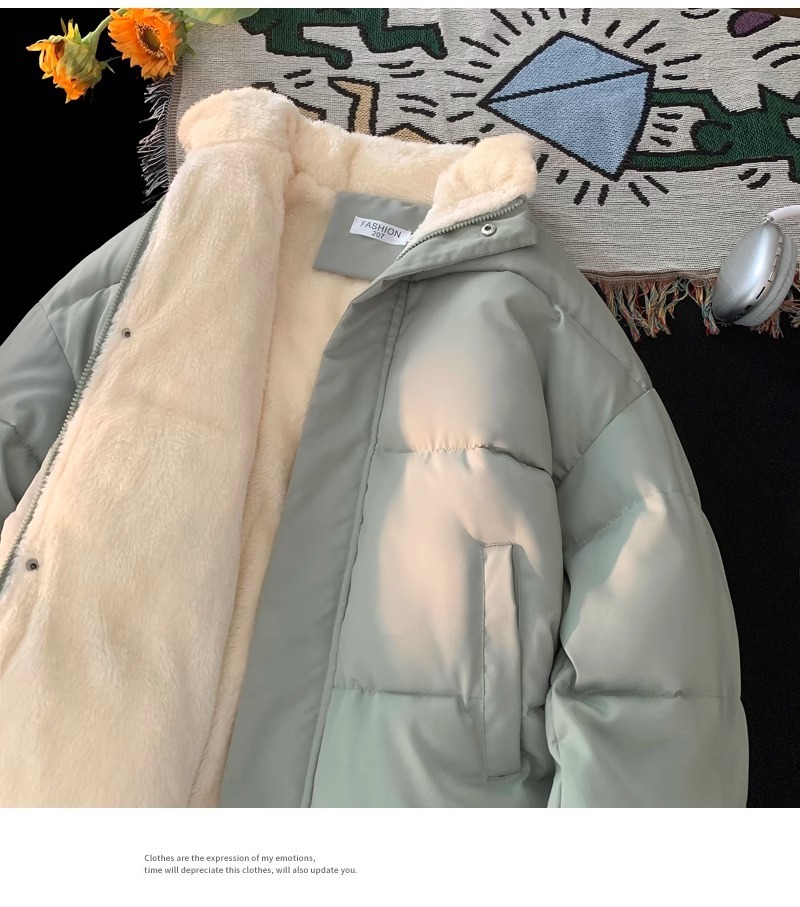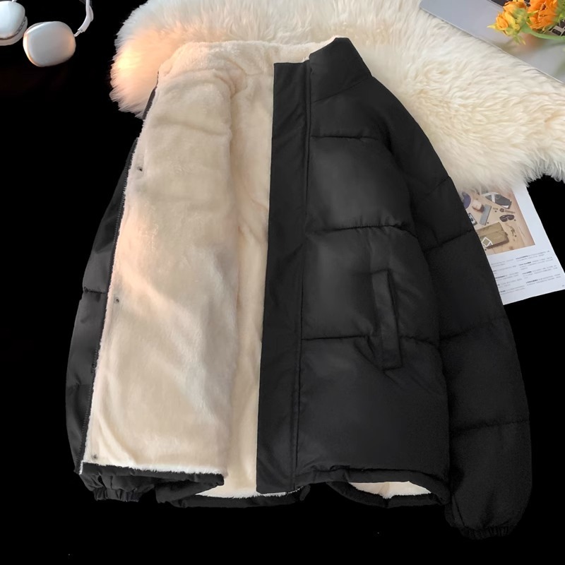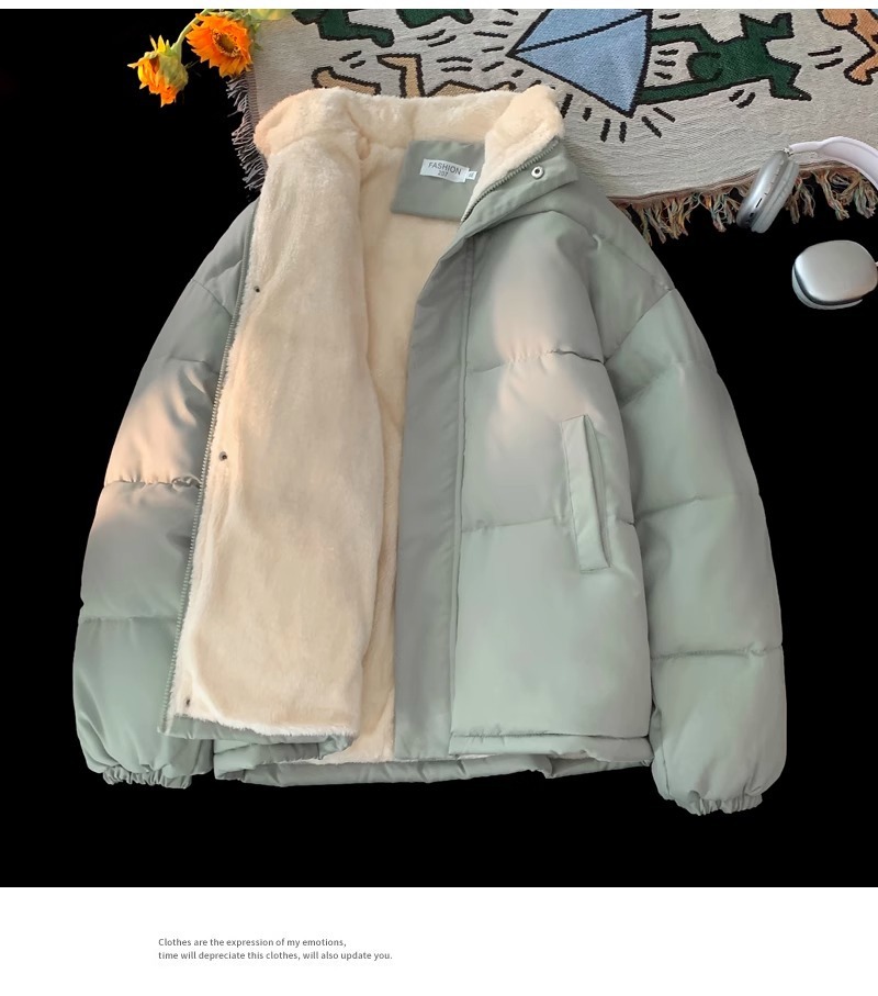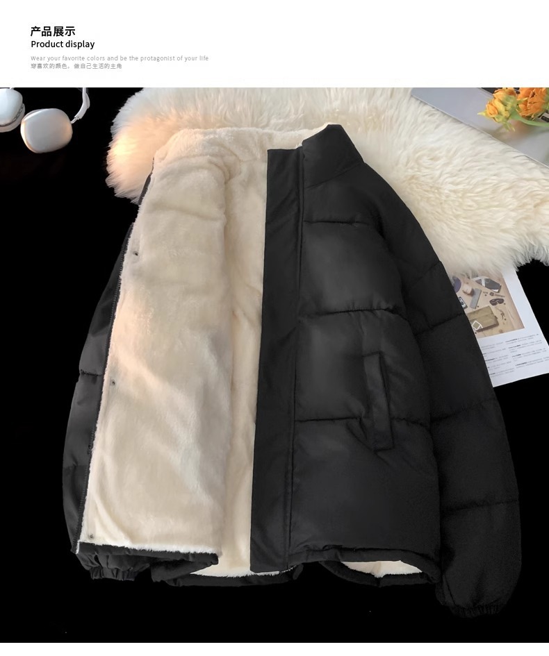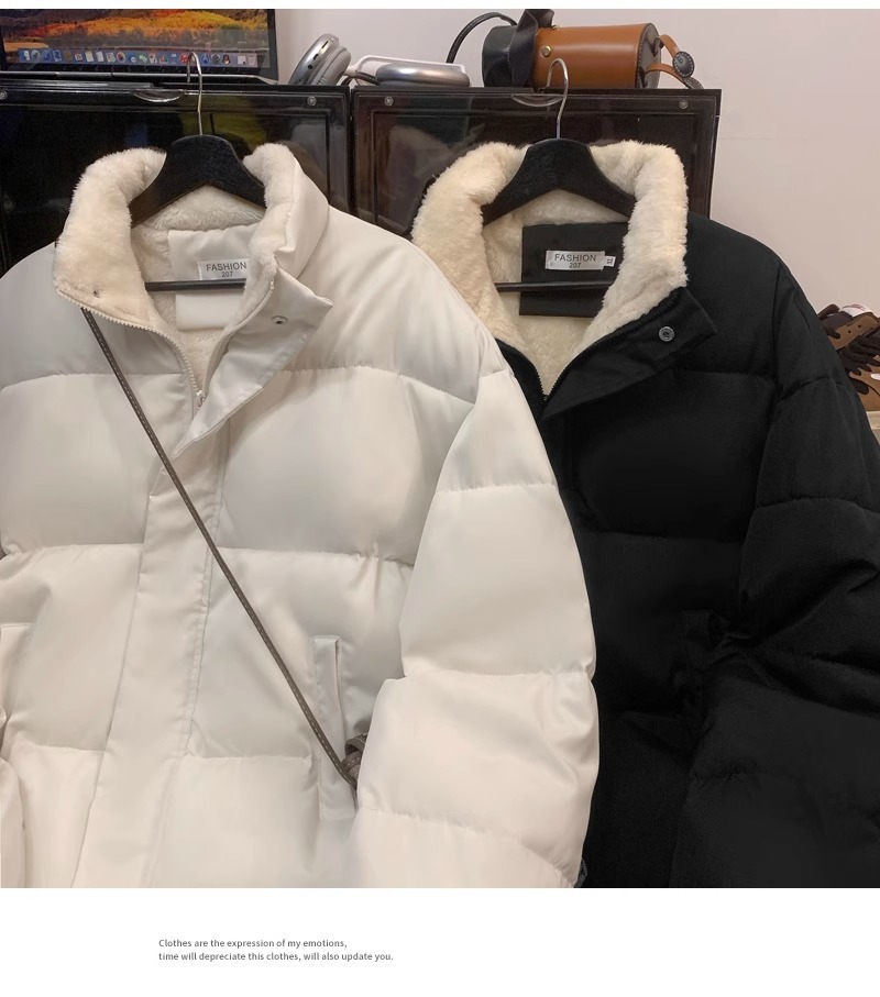OVERLOA 양털 양털 코튼 패딩 코트 남성용 코튼 패딩 코트, 수직 칼라 올 매치 두꺼운 빵 코트 캐주얼 코튼 패딩 코트