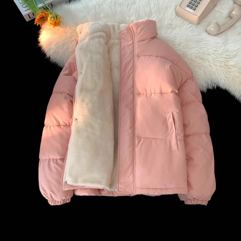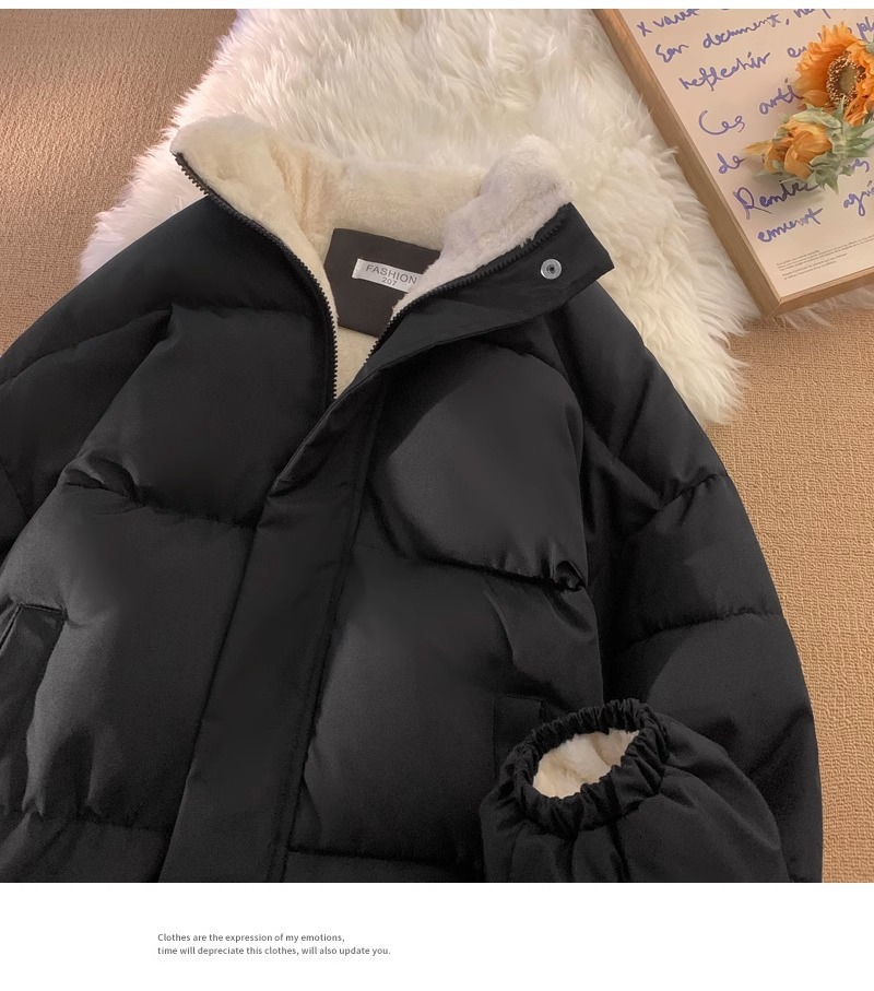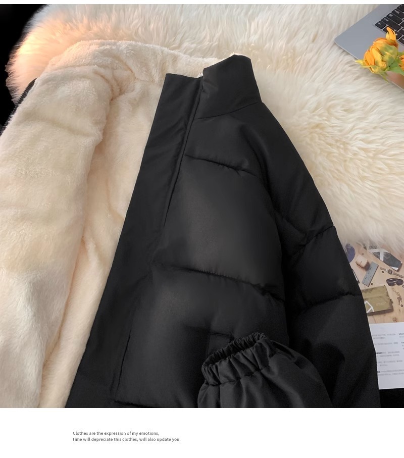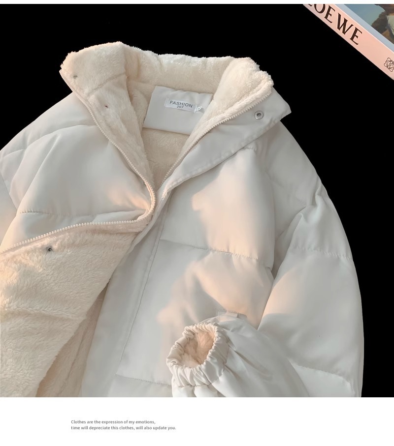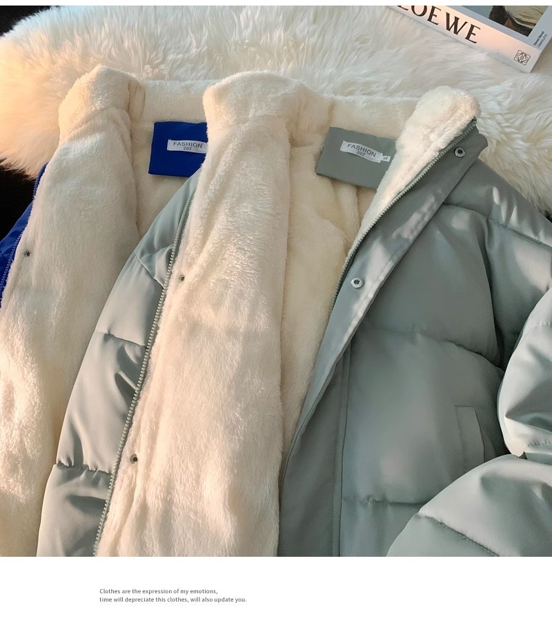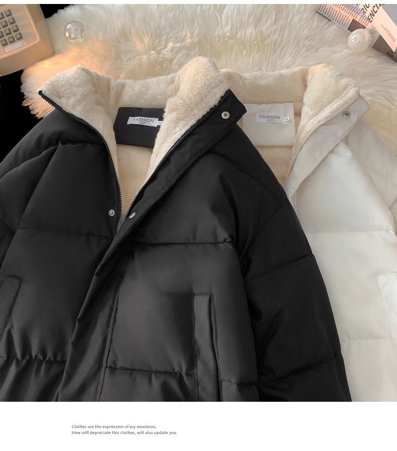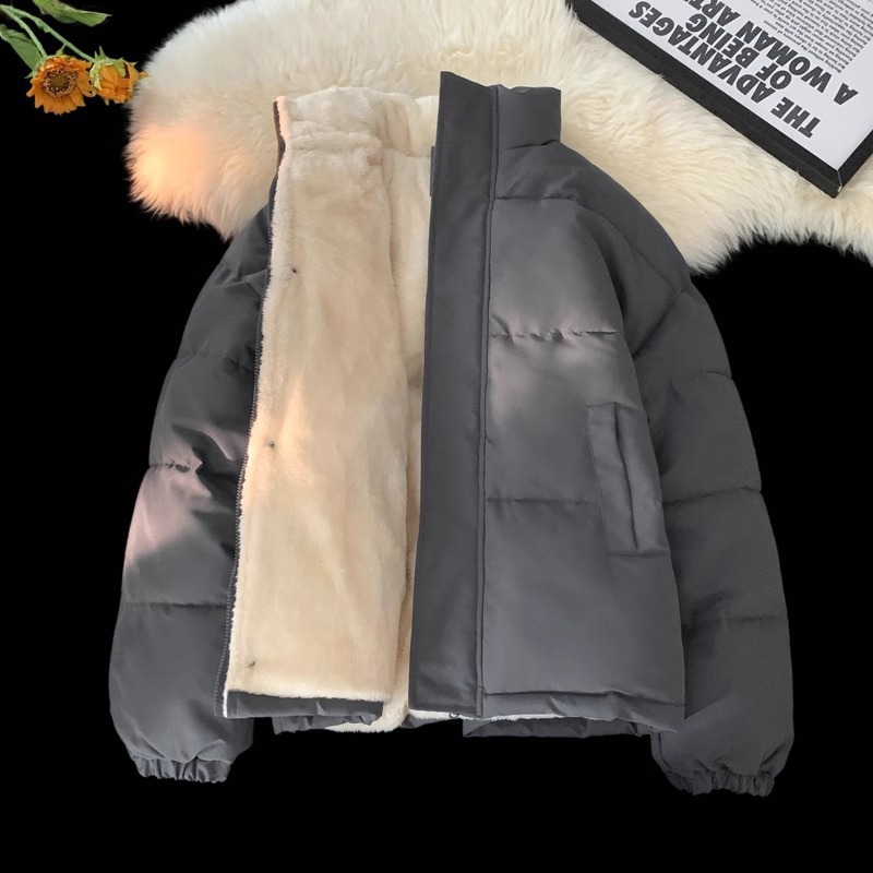 OVERLOA 양털 양털 코튼 패딩 코트 남성용 코튼 패딩 코트, 수직 칼라 올 매치 두꺼운 빵 코트 캐주얼 코튼 패딩 코트
