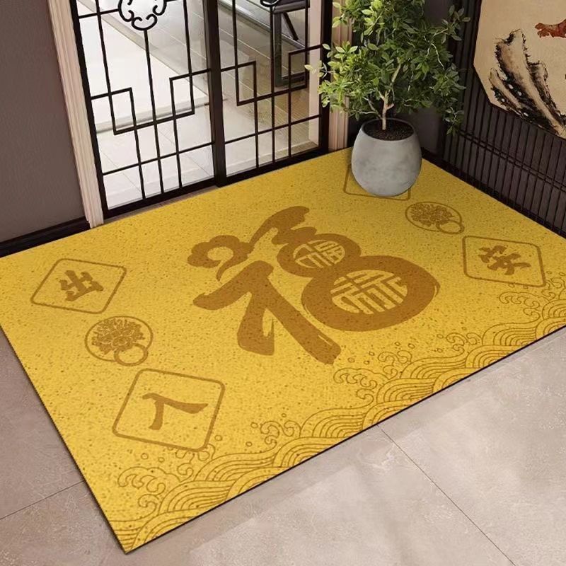 새로운 중국 스타일 바닥 매트 입구 문 더러운 저항하는 입구 문 매트 노란색 풍수 매트 입구 문 절단 가능한 실크 링 바닥 매트