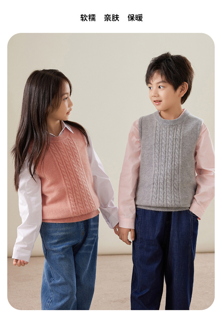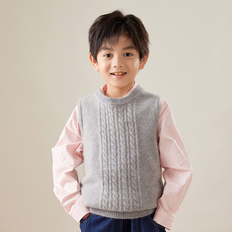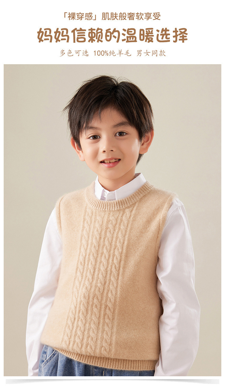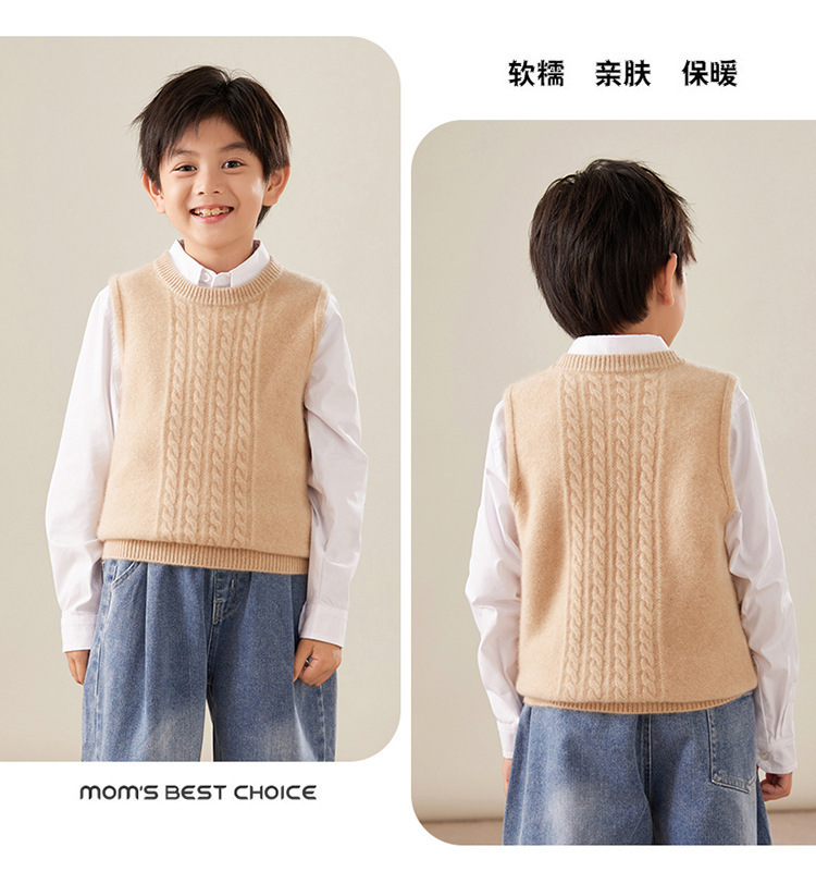 가을과 겨울 따뜻한 어린이 캐시미어 스웨터 민소매 조끼 양모 스웨터 짧은 트위스트 크루 넥 스웨터 니트 스웨터스토어 가기