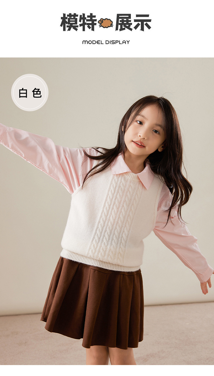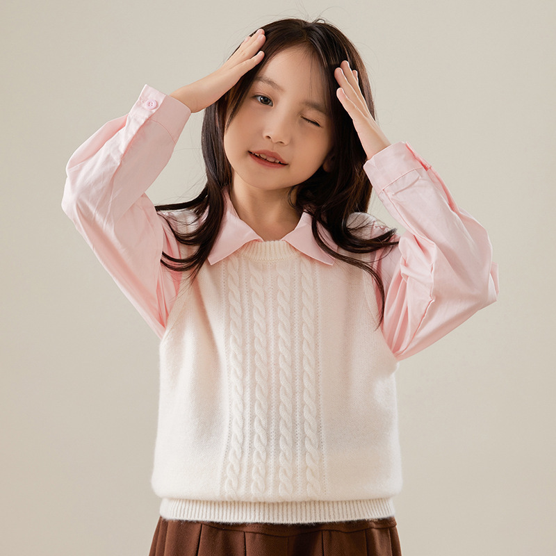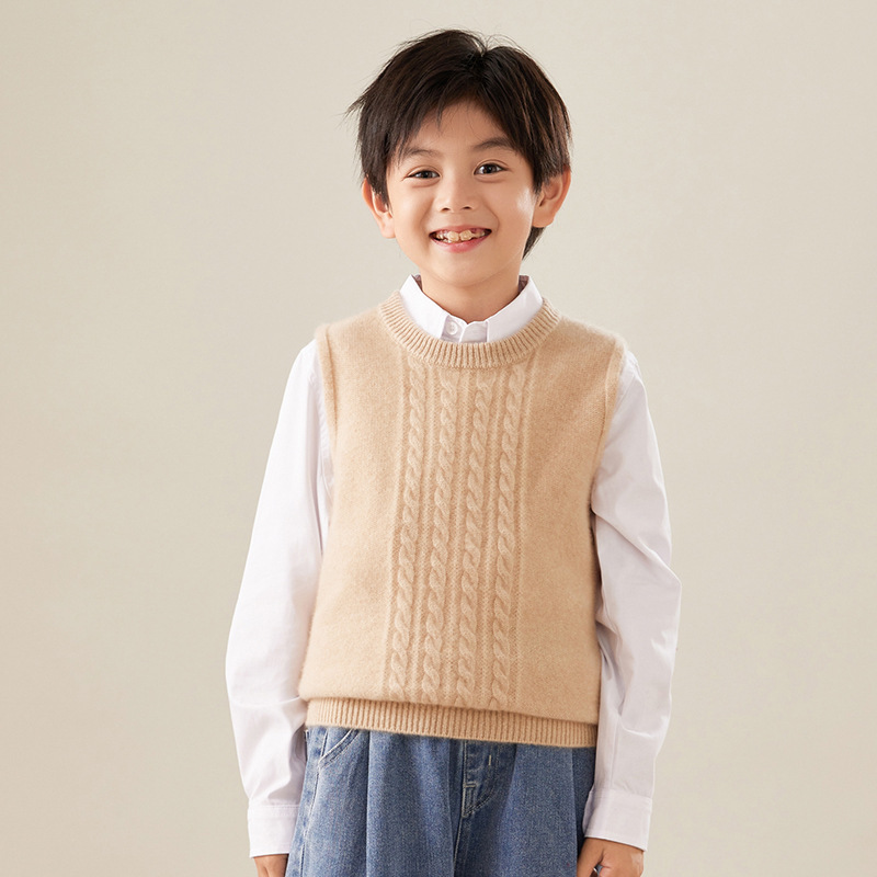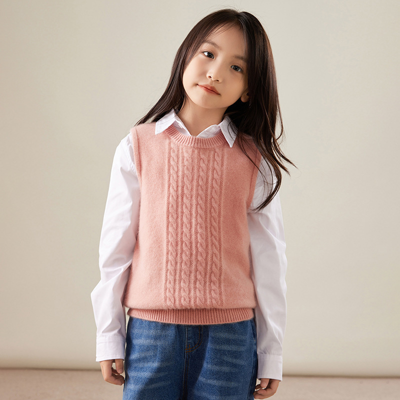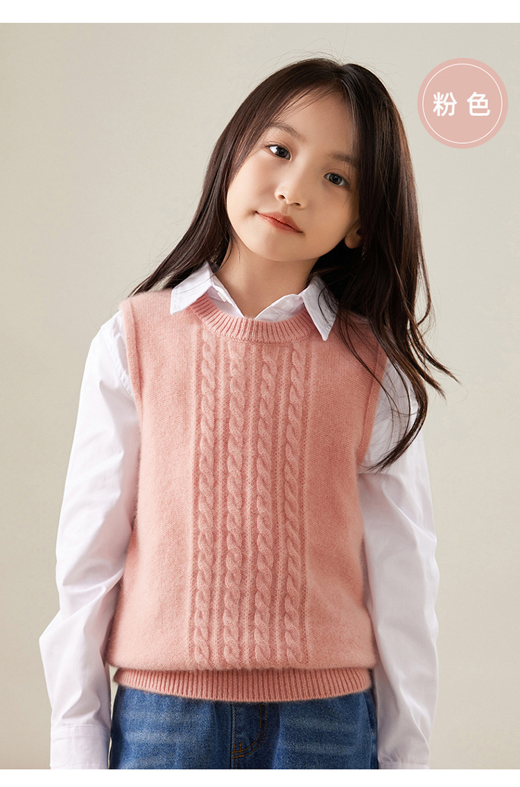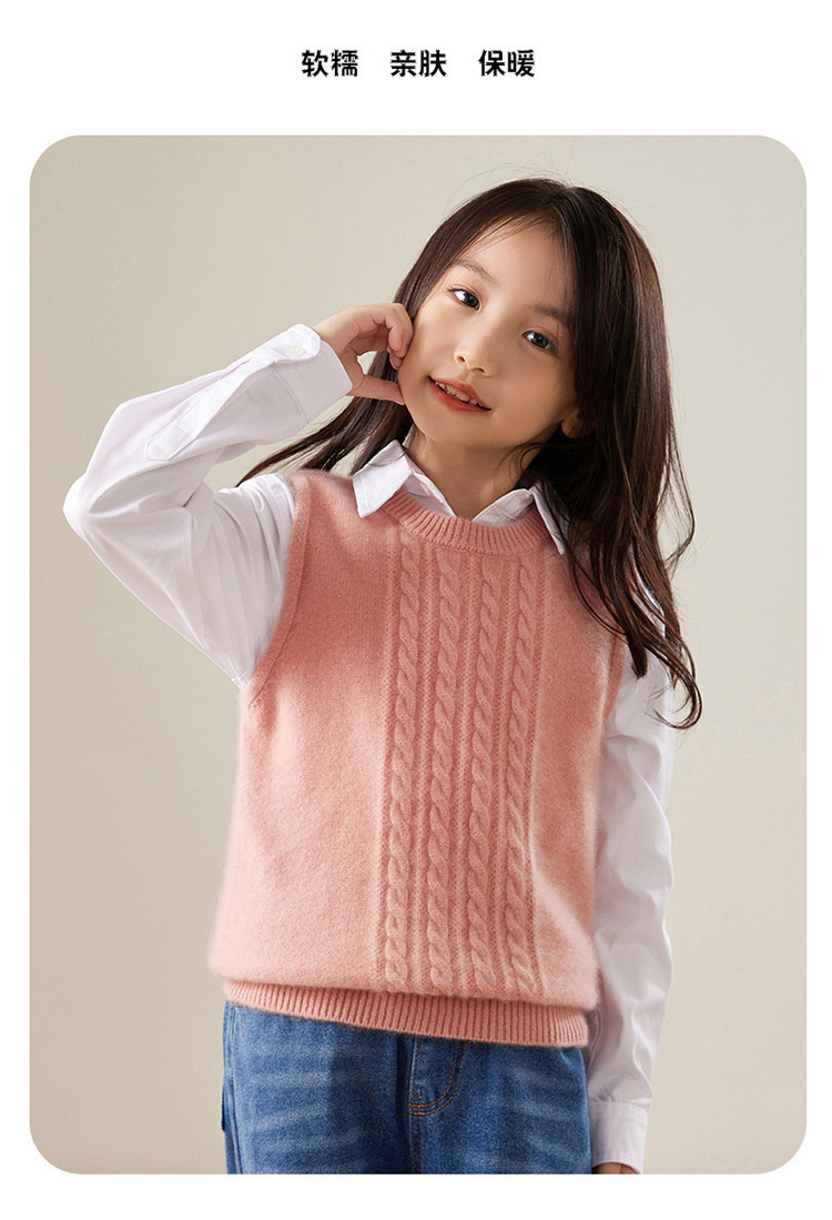 가을과 겨울 따뜻한 어린이 캐시미어 스웨터 민소매 조끼 양모 스웨터 짧은 트위스트 크루 넥 스웨터 니트 스웨터
