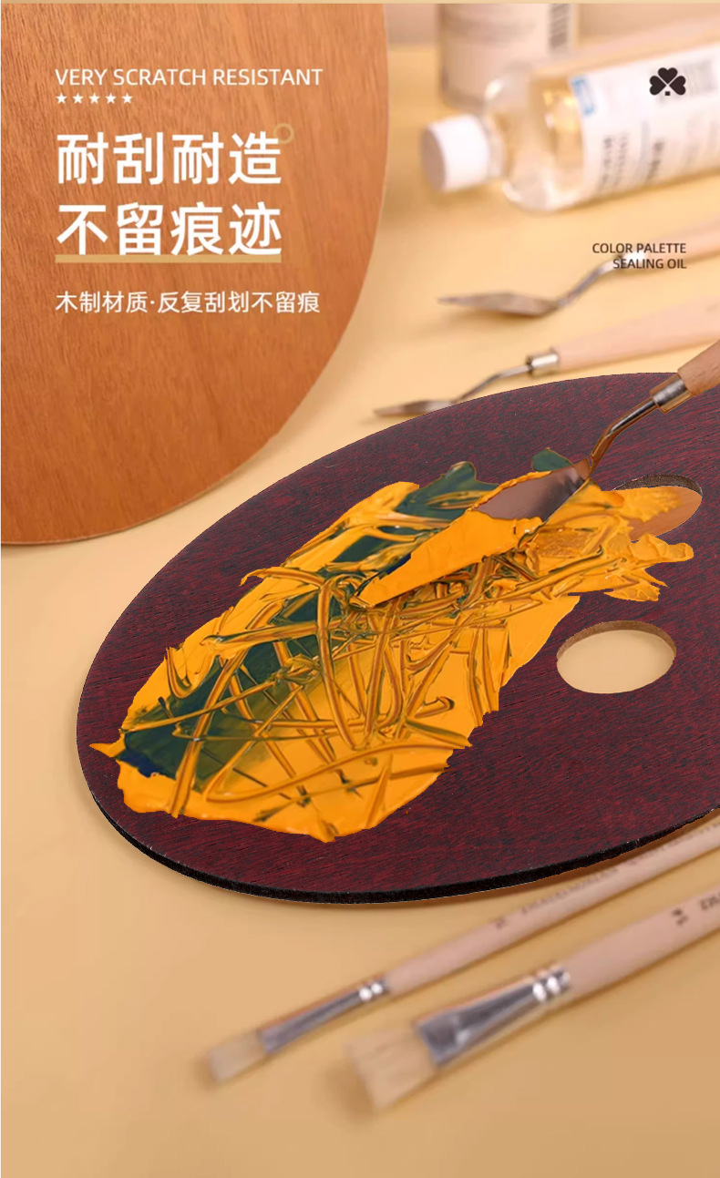 예술 학생들을위한 나무 유화 팔레트 복고풍 호두 컬러 유약 구 아슈 큰 손으로 그린 타원형 팔레트