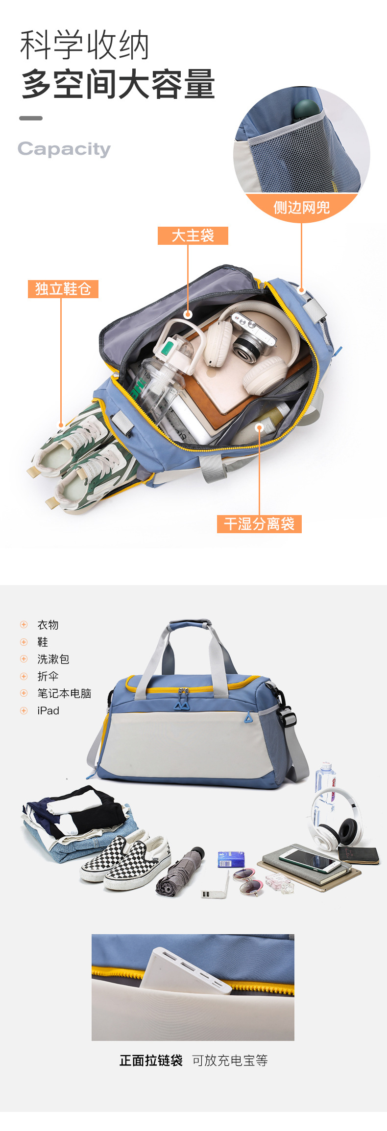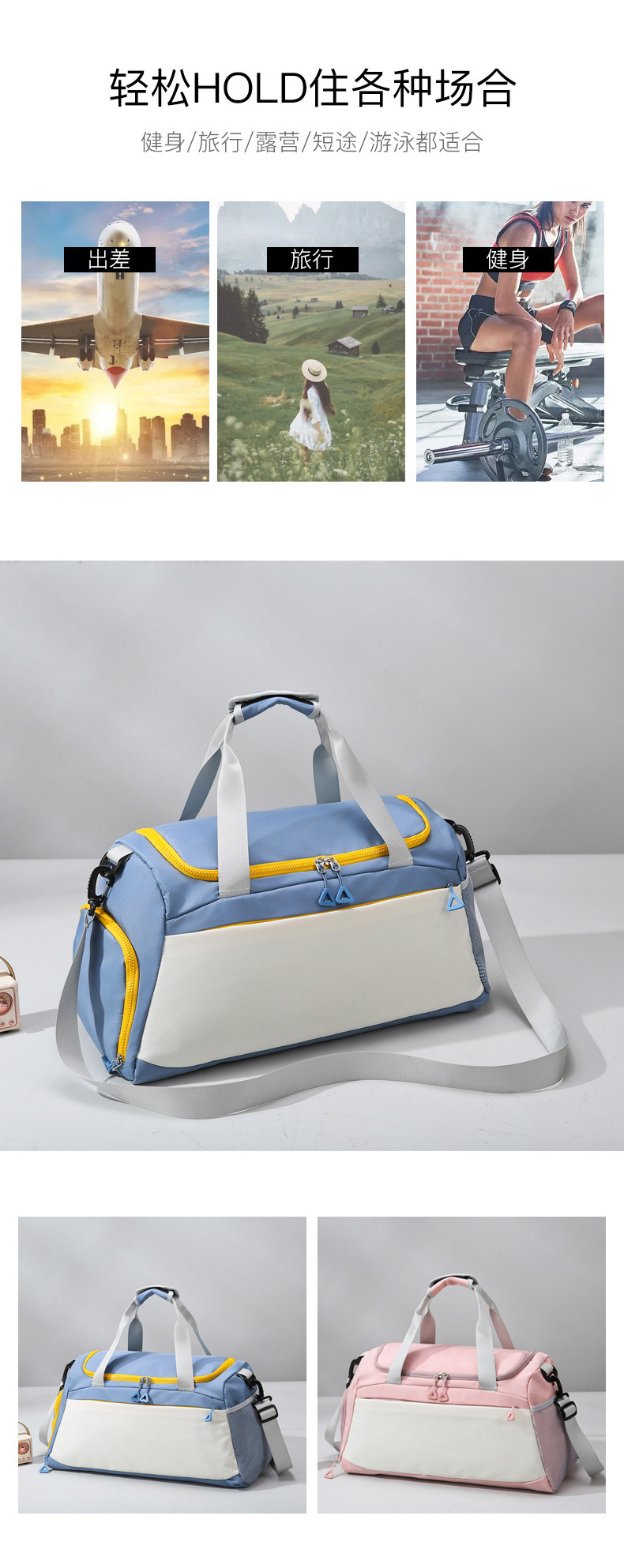 국경 간 체육관 가방 여성 건조하고 젖은 별도의 수영 스포츠 가방 남자 크로스 바디 가방 단거리 수하물 가방 대용량 여행 가방