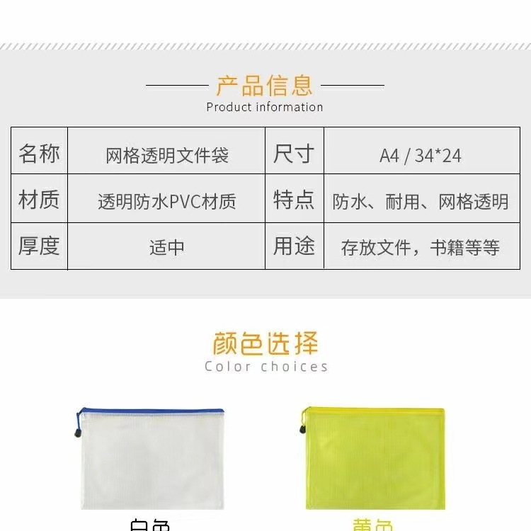 투명 메쉬 가방 멀티 사양 지퍼 가방 사무실 보관 가방 학생 분류 테스트 가방 방수 가방 A3A4A5A6스토어 가기