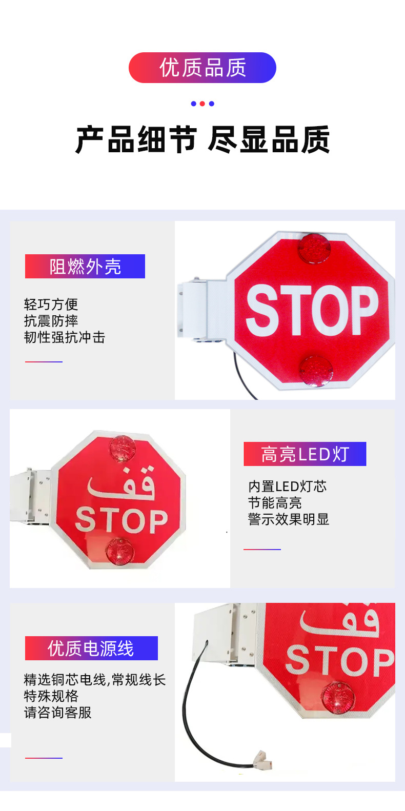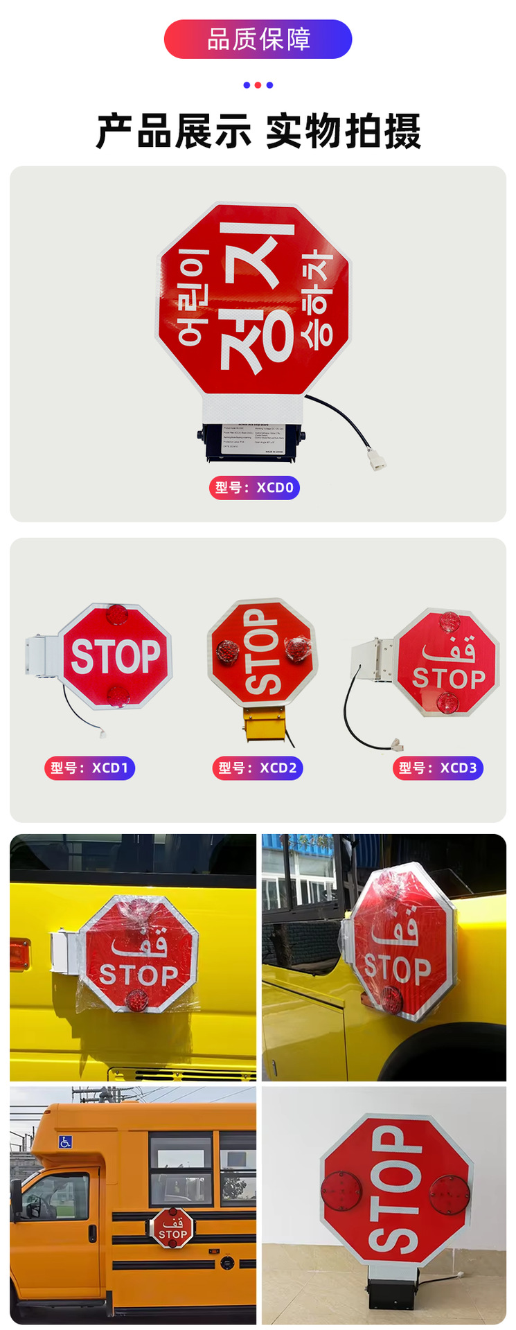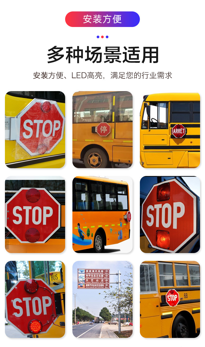 영어 주차 표지판, 완전 자동 아랍어 스쿨버스 주차 표지판, 전동 암형 차량 탑재 LED 경고등스토어 가기