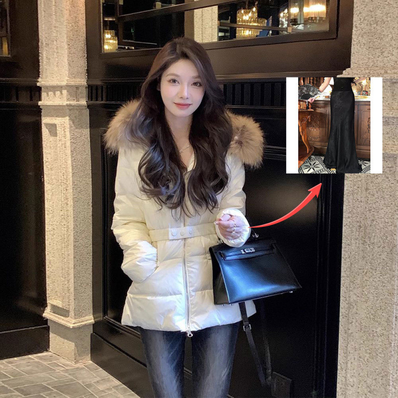 [작은 허리 에센스의 1 세대] 2025 봄과 가을 새로운 허리 디자인 하이 엔드 라이트 럭셔리 모조 가죽 모피 칼라 코트 여성스토어 가기