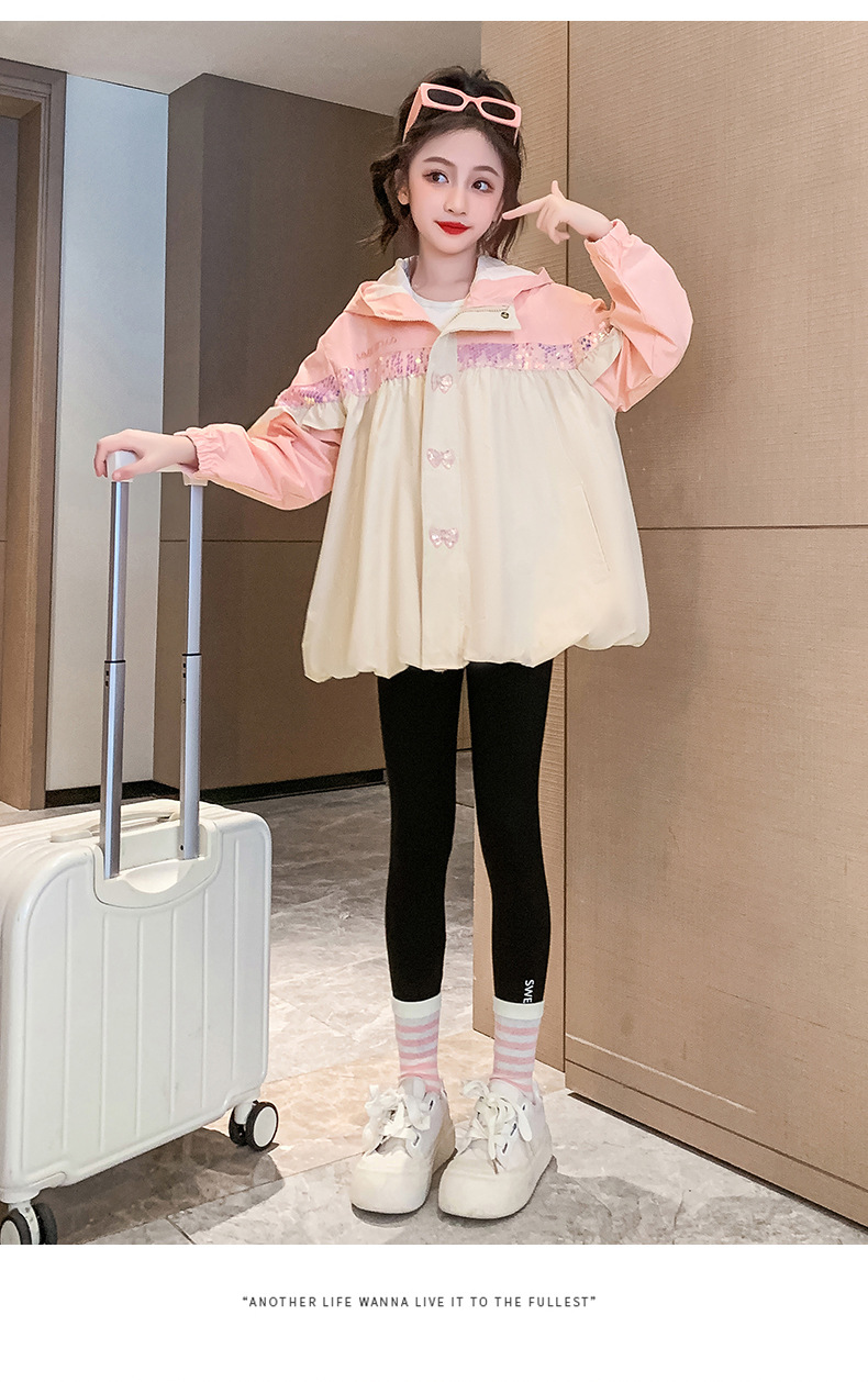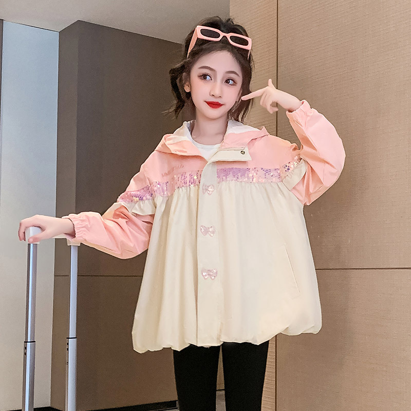2025 봄 새로운 소녀 활 속편 자수 코트 달콤한 패션 서양식 후드 코트 대형 어린이