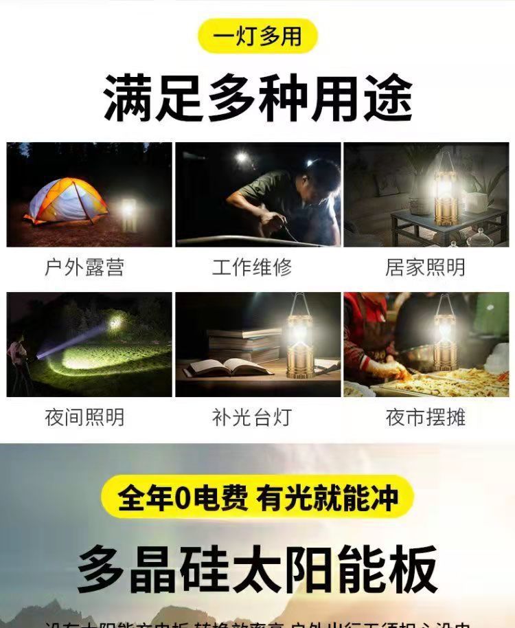 캠핑 램프 태양 랜턴 다기능 캠핑 램프 텐트 램프 작업 램프 야외 조명 램프 휴대용 랜턴