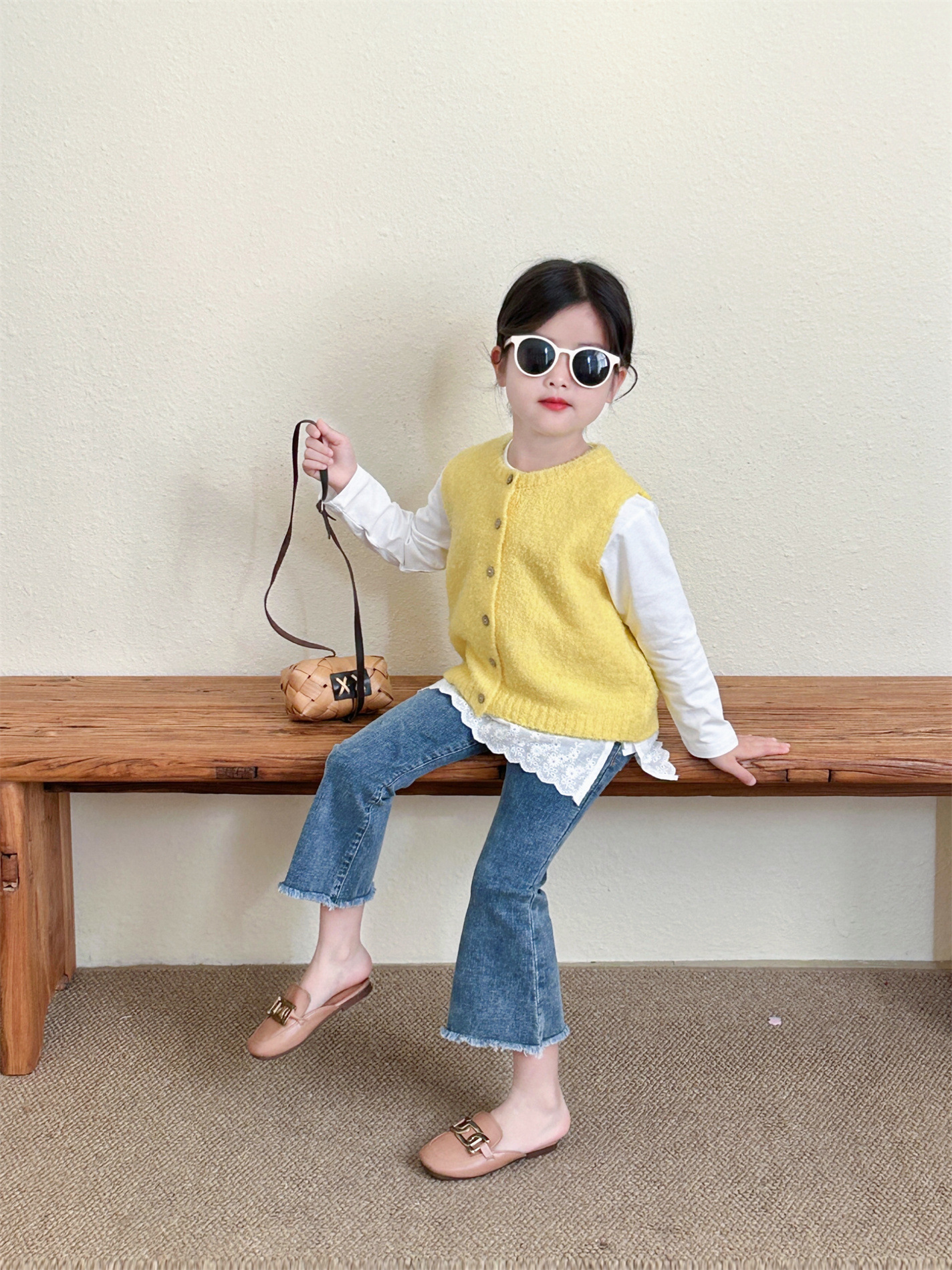 여자 니트 조끼 캔디 컬러 2025 봄 새 아동복 아기 소녀 한국 스타일 외국인 스타일 카디건 울 조끼