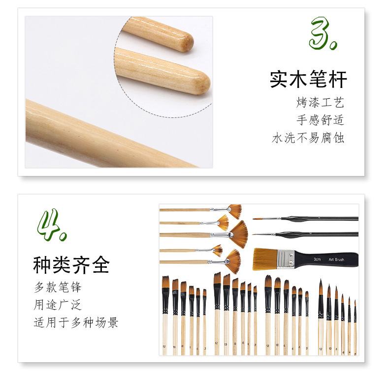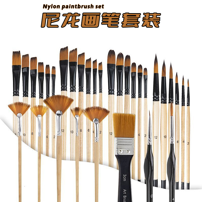 국경 32 조각 나일론 나무 보드 브러시 후크 라인 팬 모양의 학생 별 아트 페인팅 조합 브러시 세트 도매스토어 가기