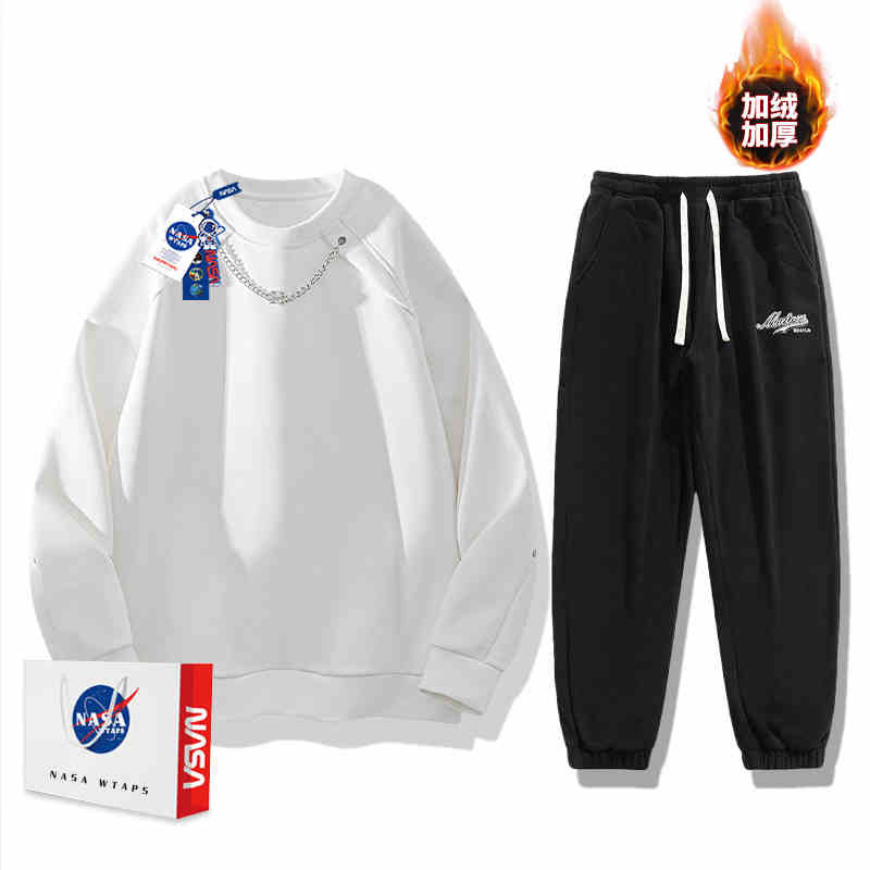 NASA 남자 라운드 넥 올 매치 땀 겨울 새로운 유행 브랜드 캐주얼 독특한 느슨한 탑-체인 장식스토어 가기
