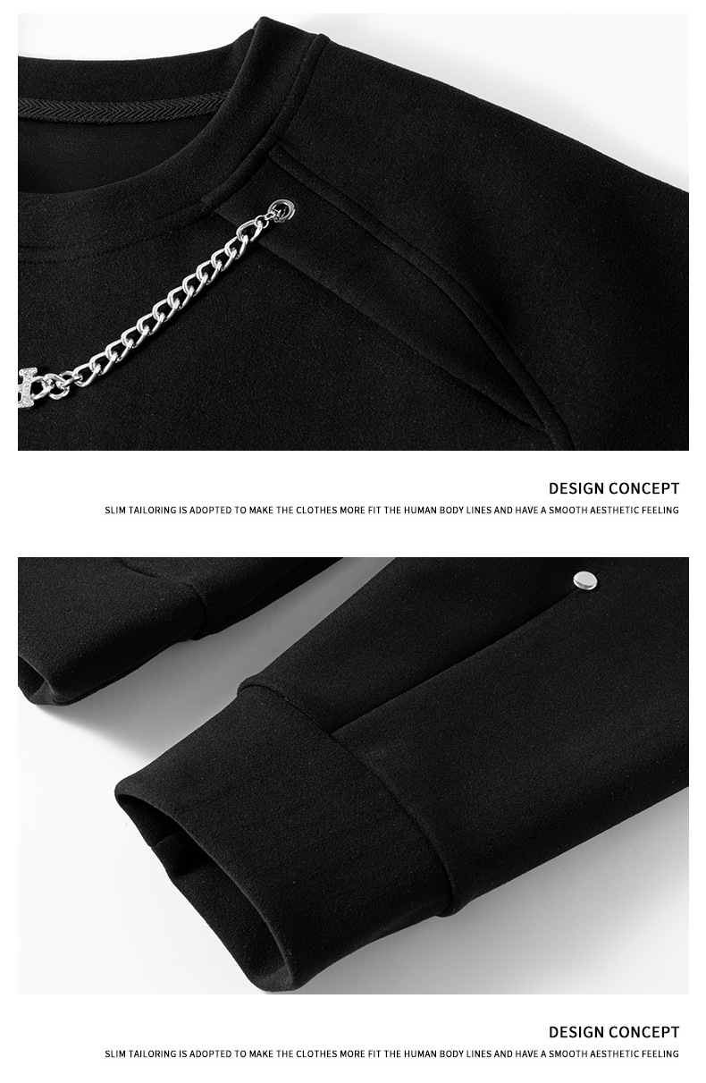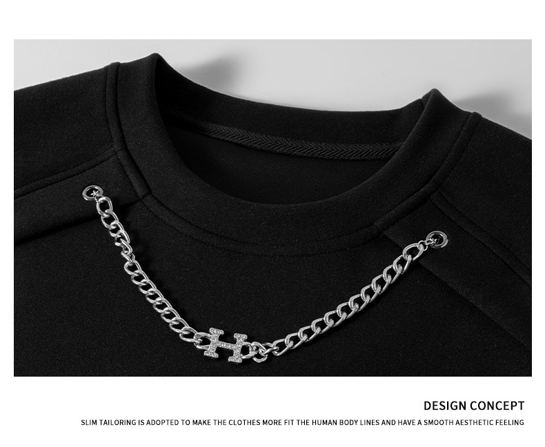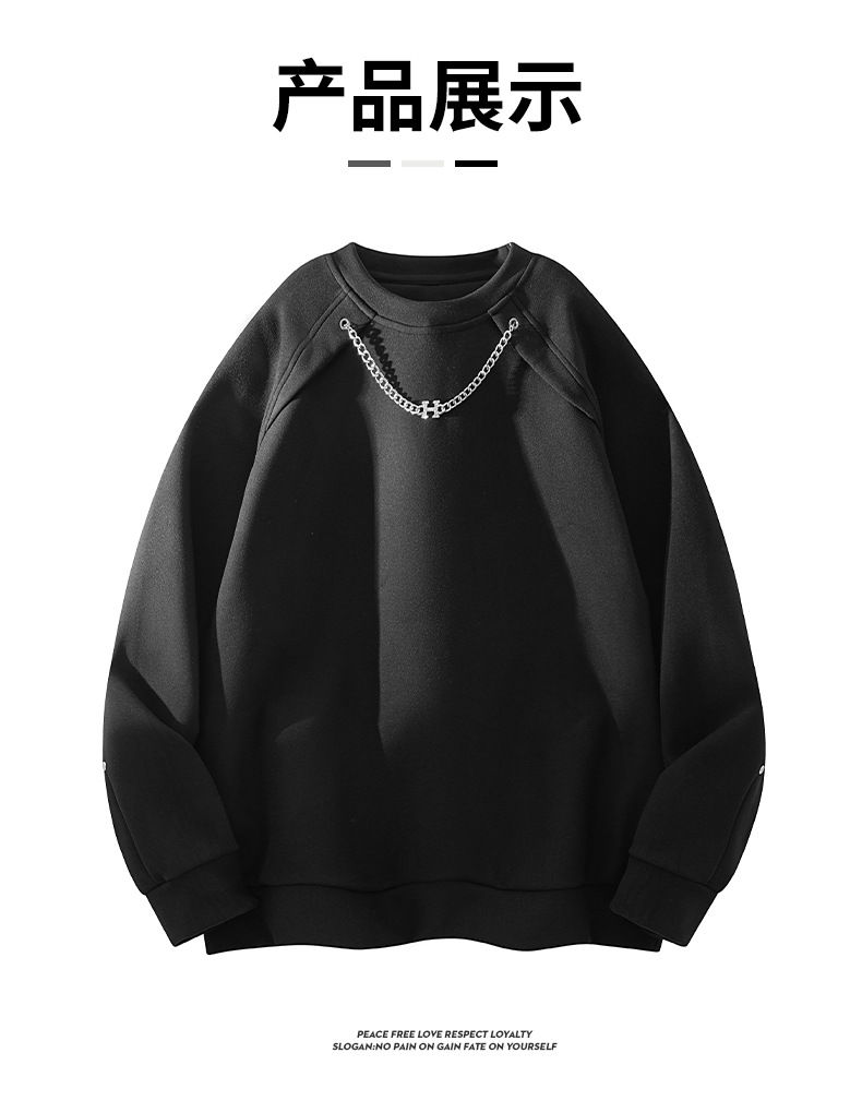 NASA 남자 라운드 넥 올 매치 땀 겨울 새로운 유행 브랜드 캐주얼 독특한 느슨한 탑-체인 장식