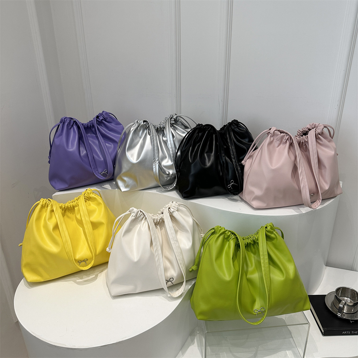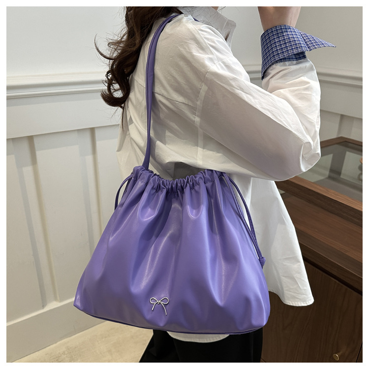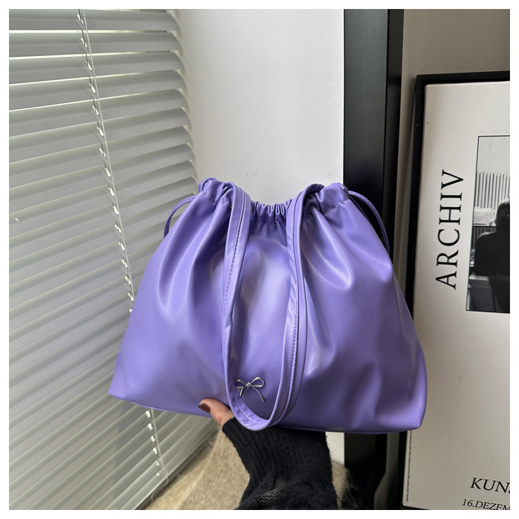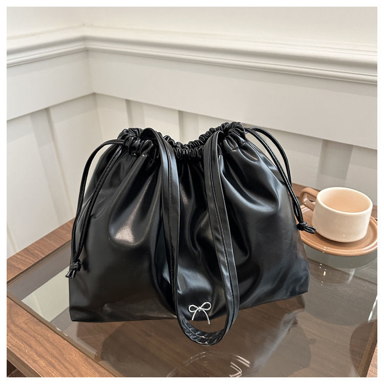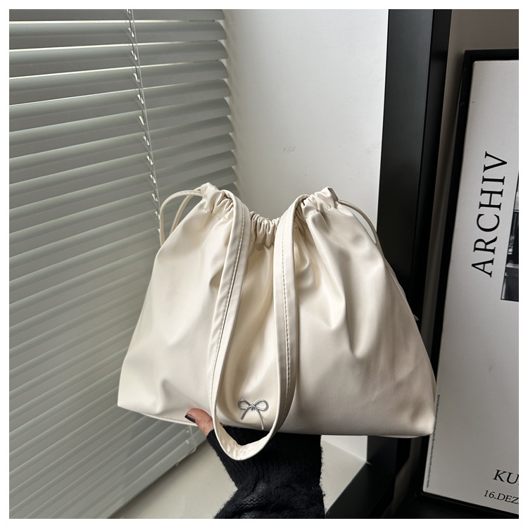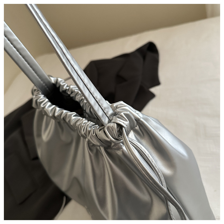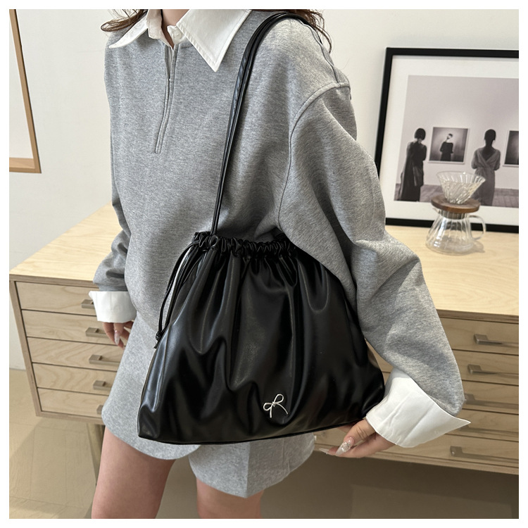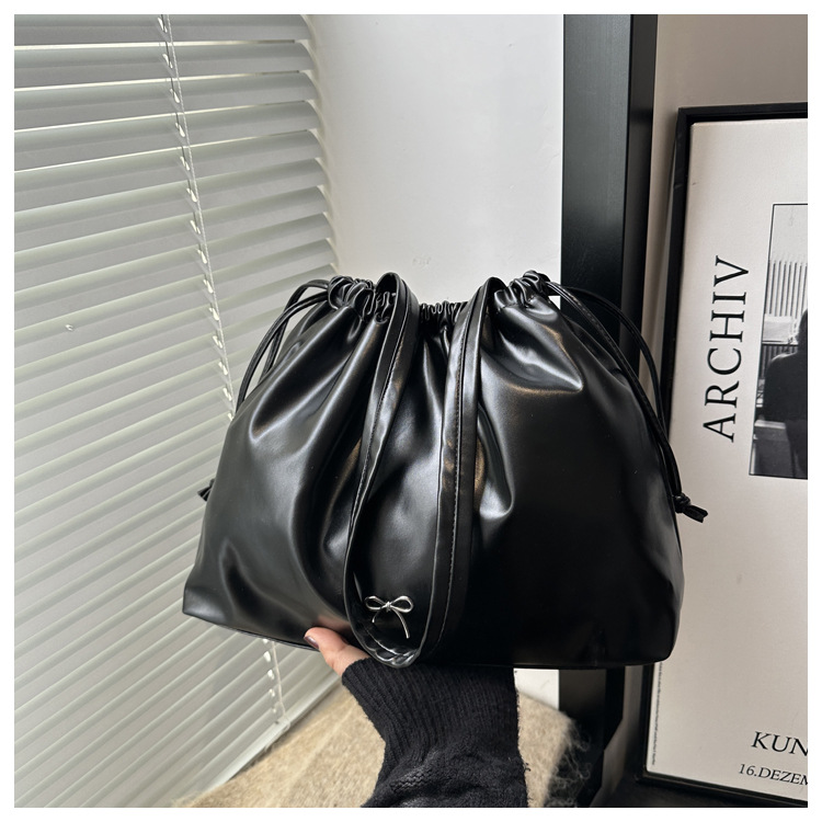 드로우 스트링 주름 양동이 가방 여성의 2024 유행 새로운 스타일 대용량 가을 캐주얼 어깨 올 매치 토트 백스토어 가기