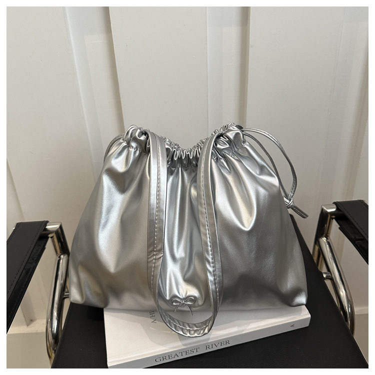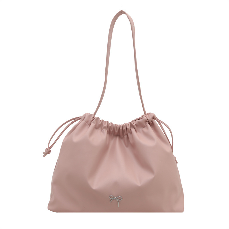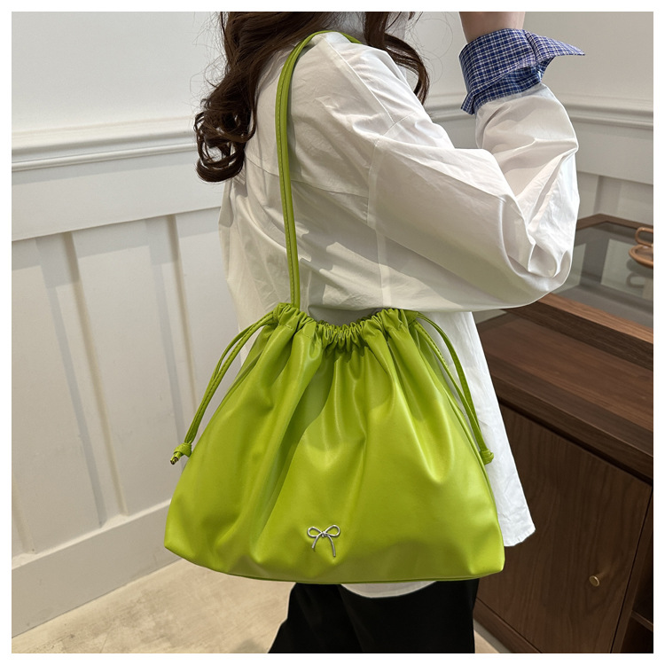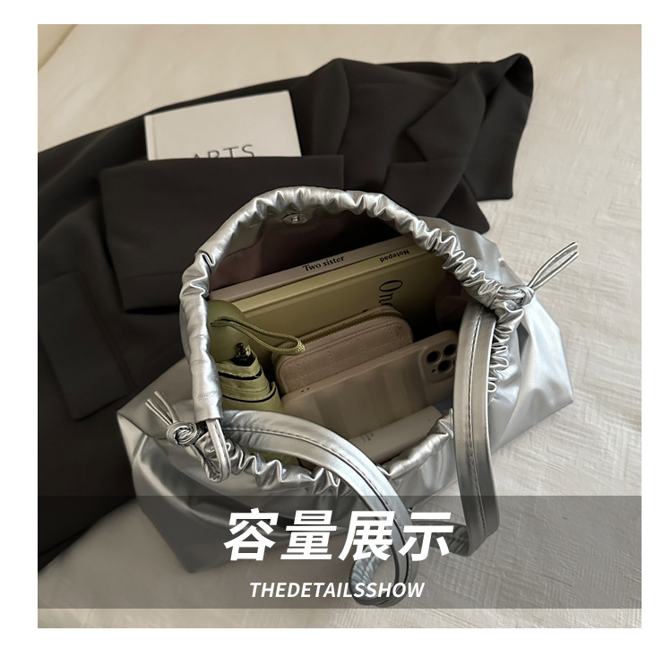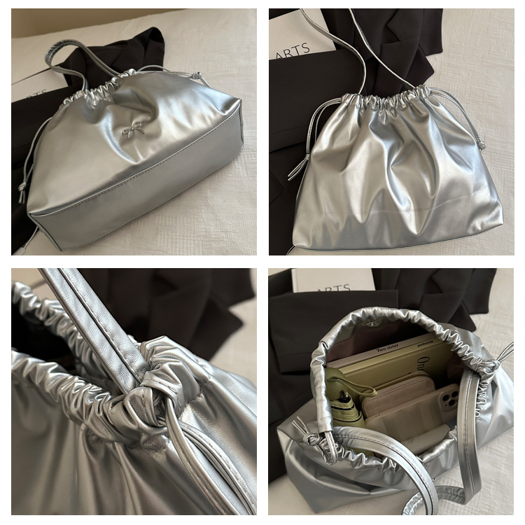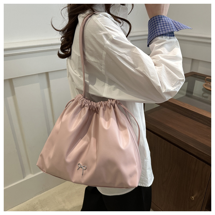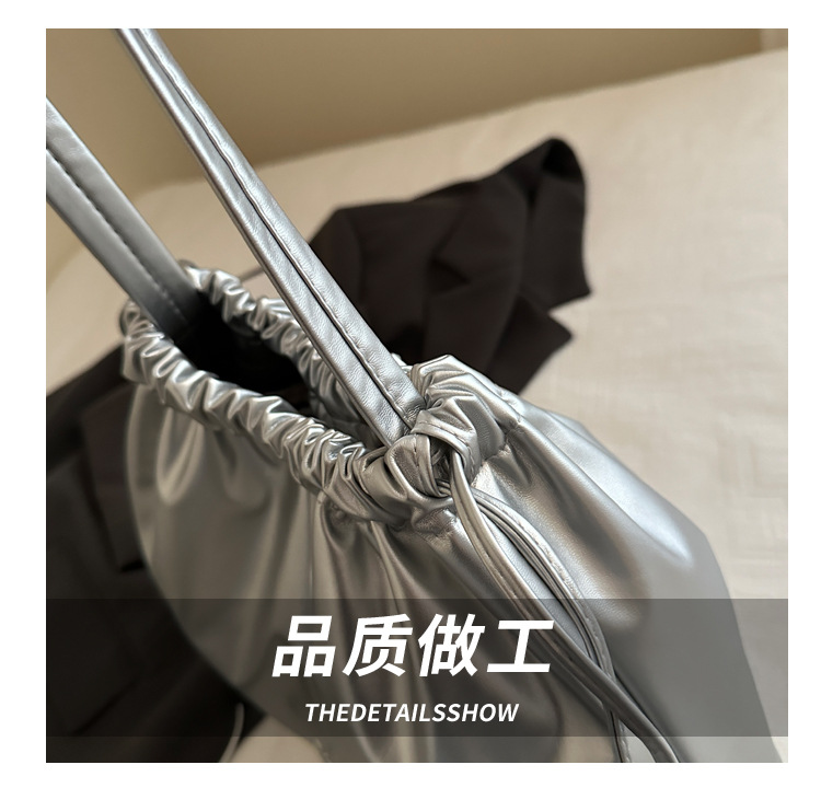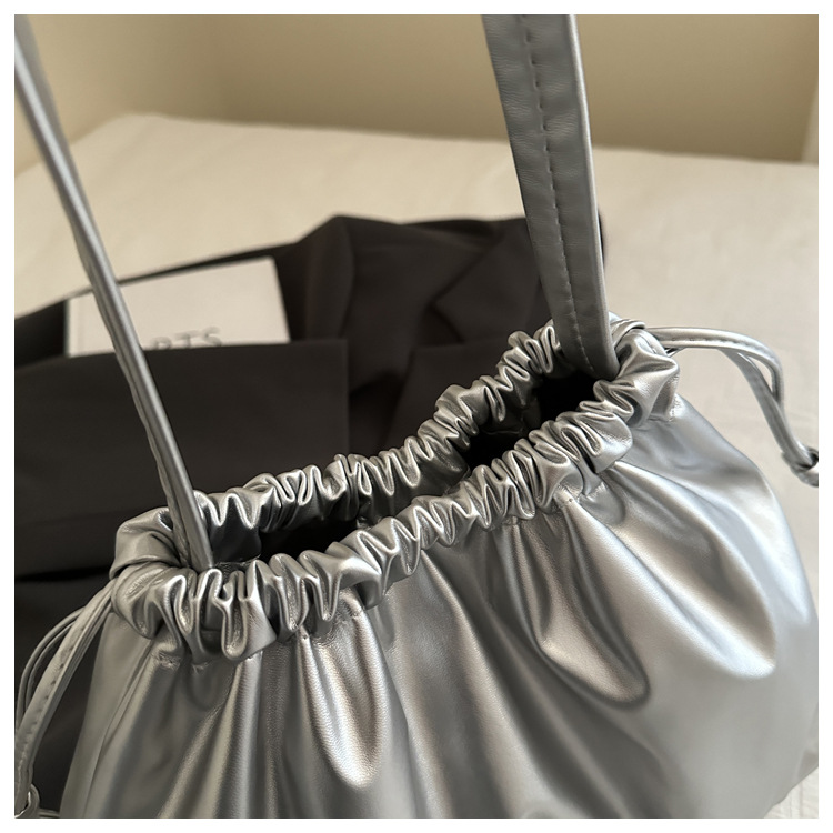 드로우 스트링 주름 양동이 가방 여성의 2024 유행 새로운 스타일 대용량 가을 캐주얼 어깨 올 매치 토트 백스토어 가기