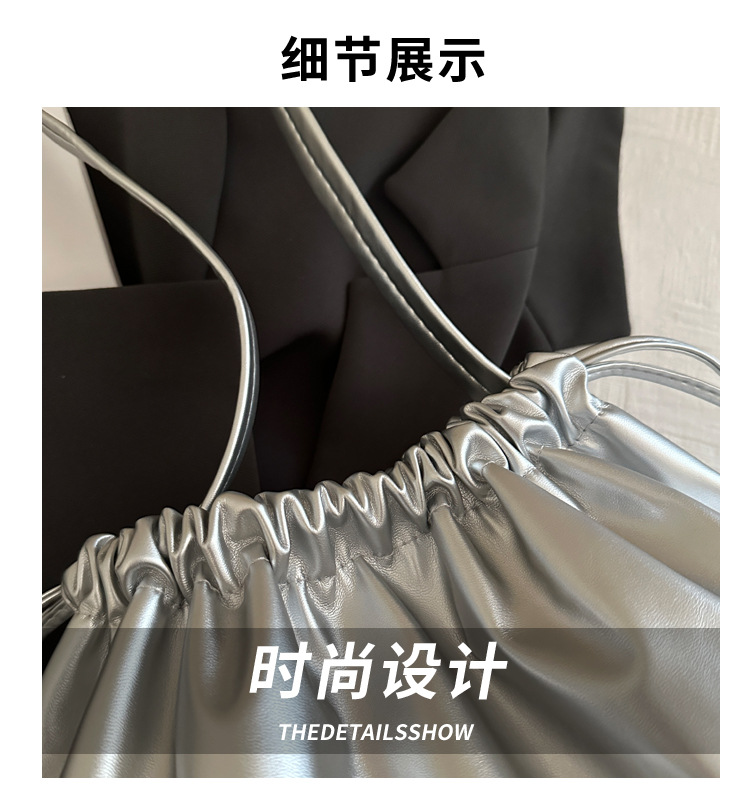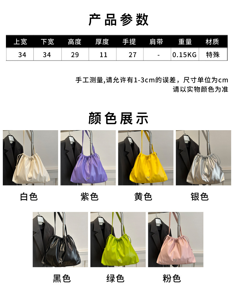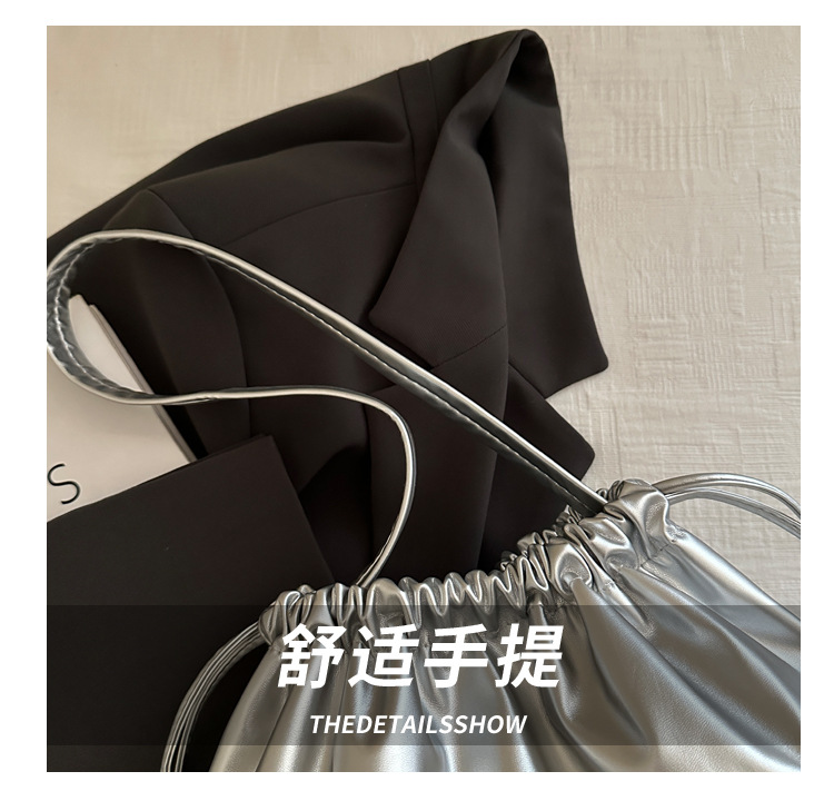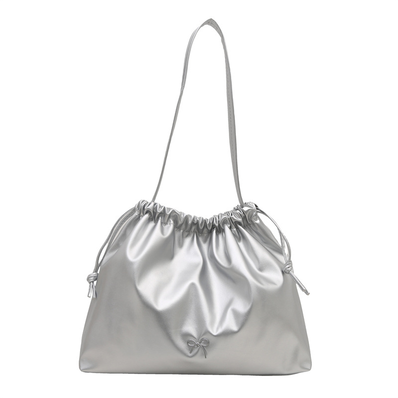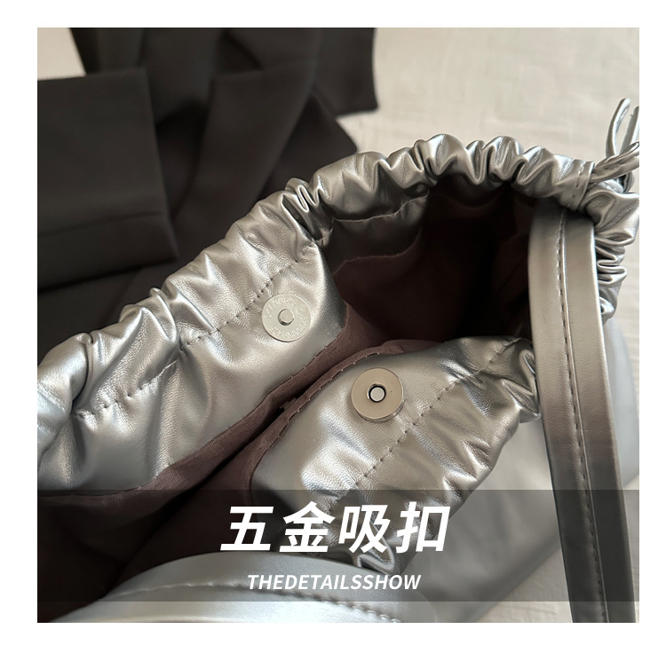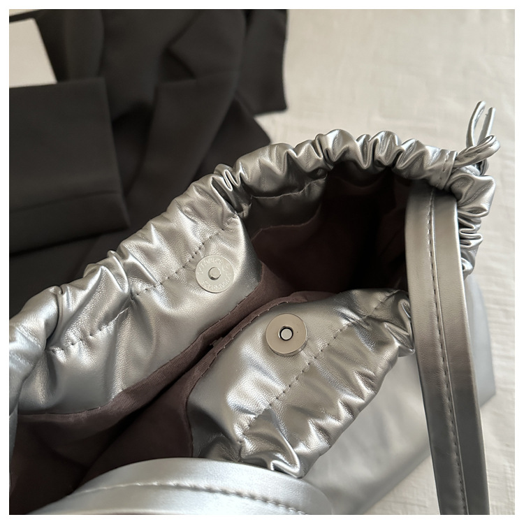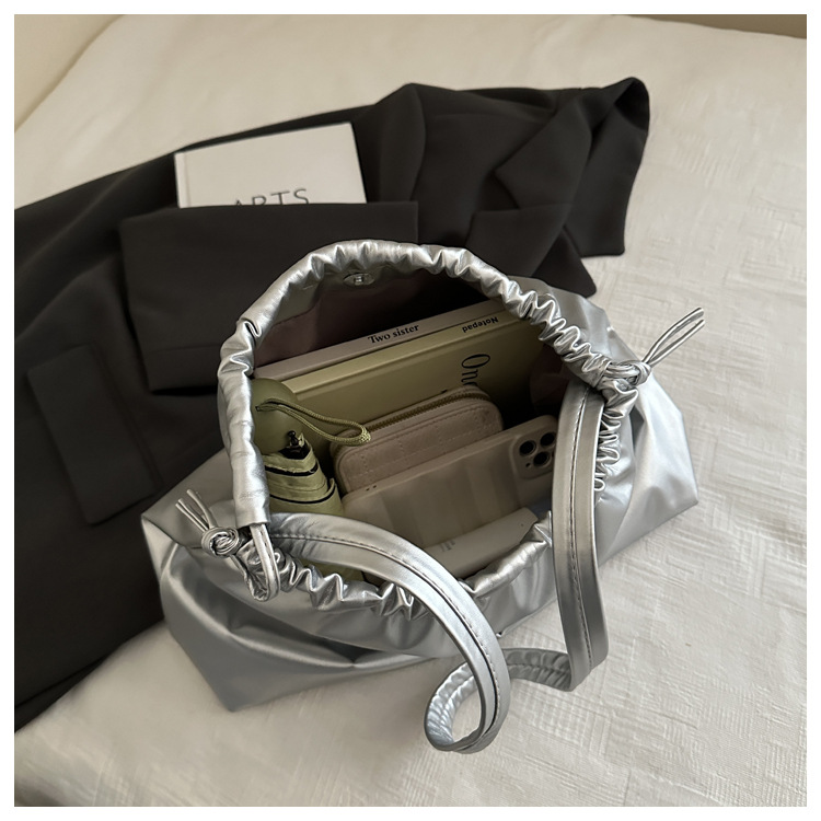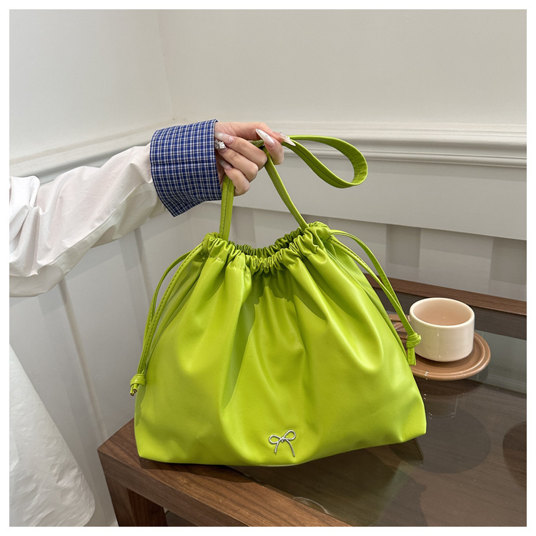 드로우 스트링 주름 양동이 가방 여성의 2024 유행 새로운 스타일 대용량 가을 캐주얼 어깨 올 매치 토트 백스토어 가기