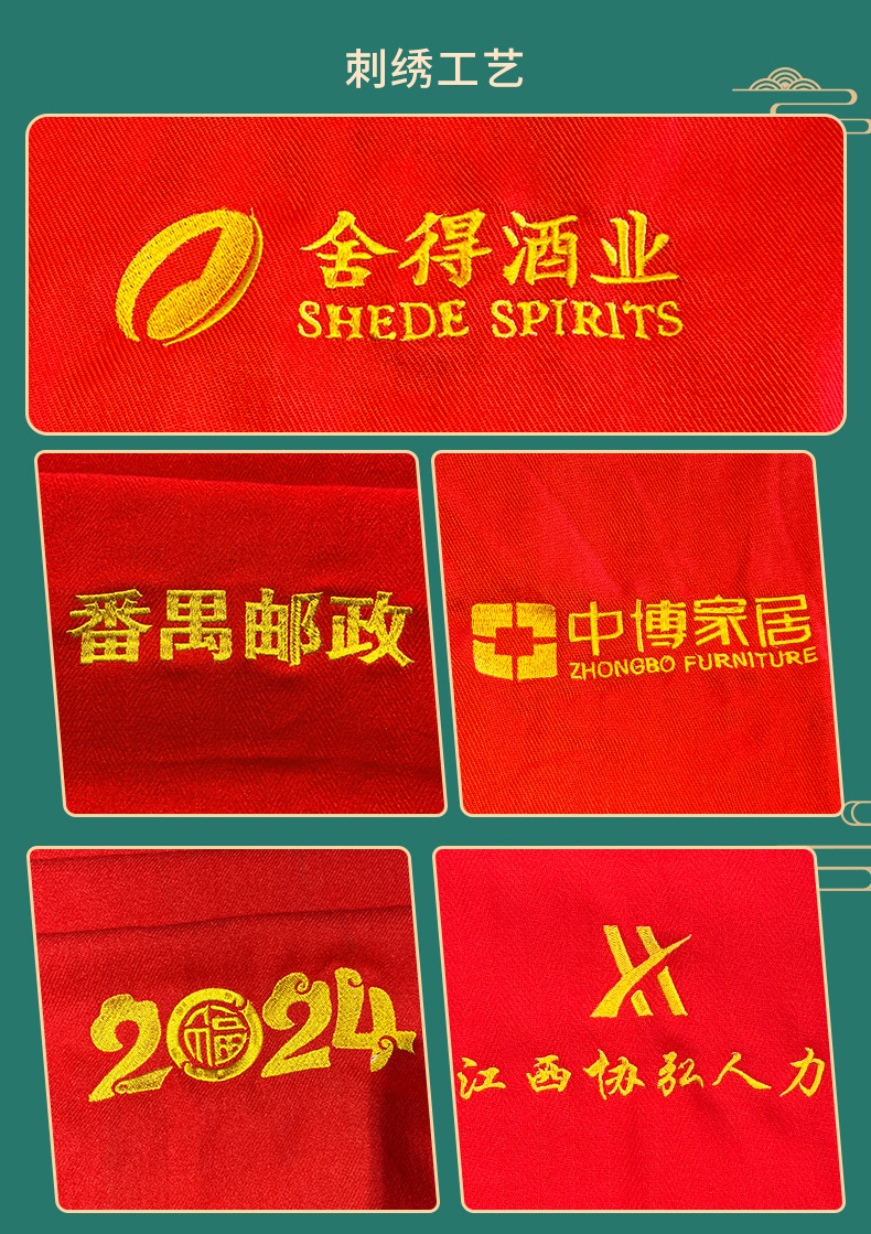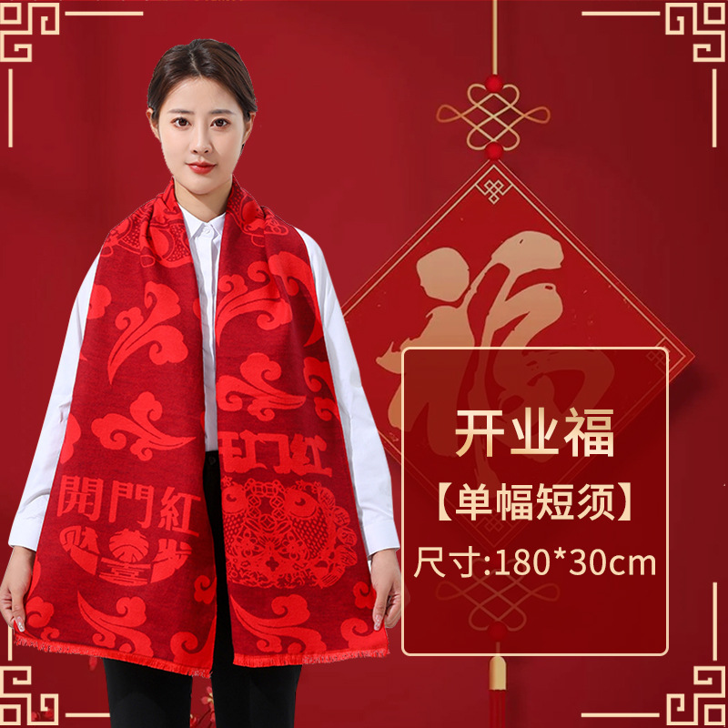 빨간 스카프 공장 도매 인쇄 로고 연례 회의 빨간 스카프 수 놓은 캐시미어 오프닝 스카프스토어 가기