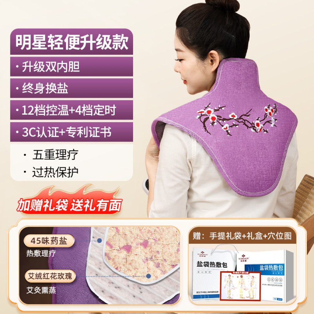 • [목+오십견 물리치료 온찜질·보라색] 업그레이드된 약용소금 45가지 맛 + 9단계 온도조절 + 고급 선물박스