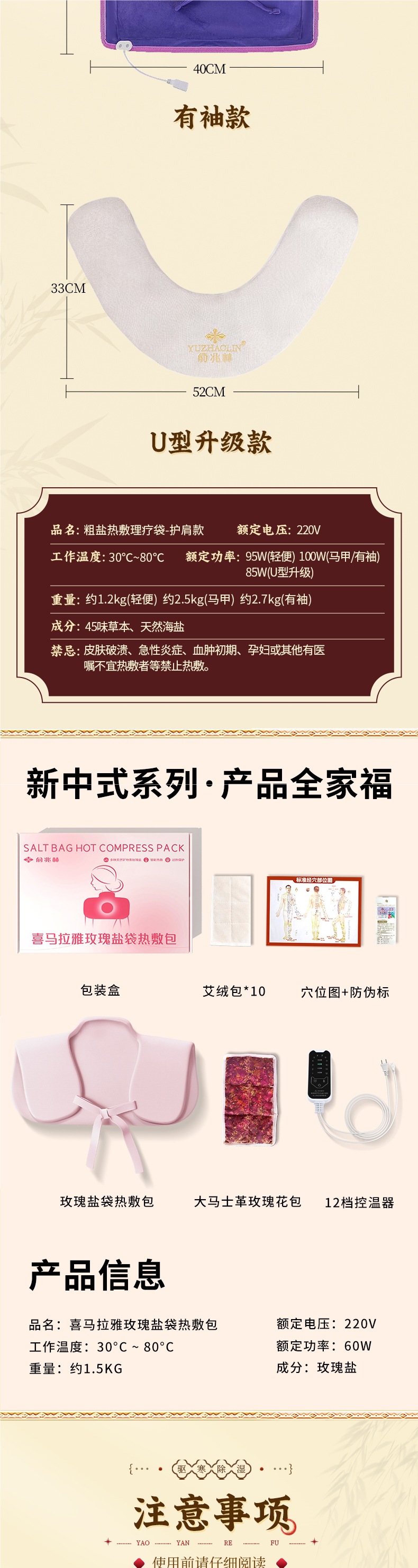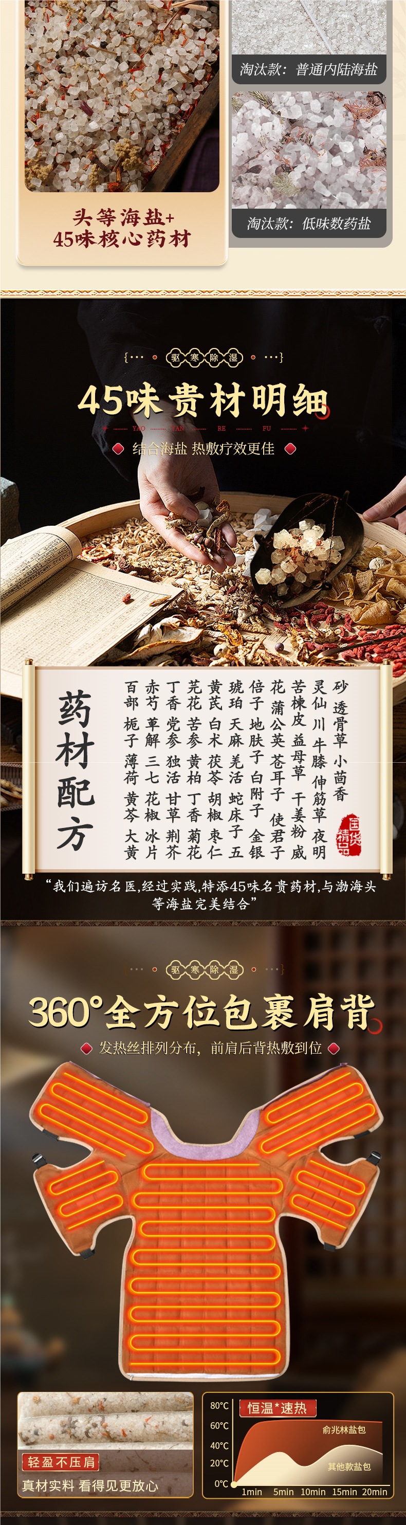 • 【360 ° 목, 어깨에 딱 맞는 쌀] 비주얼 45가지 맛 약용 소금 + 이중층 발열 + 테더 토르말린