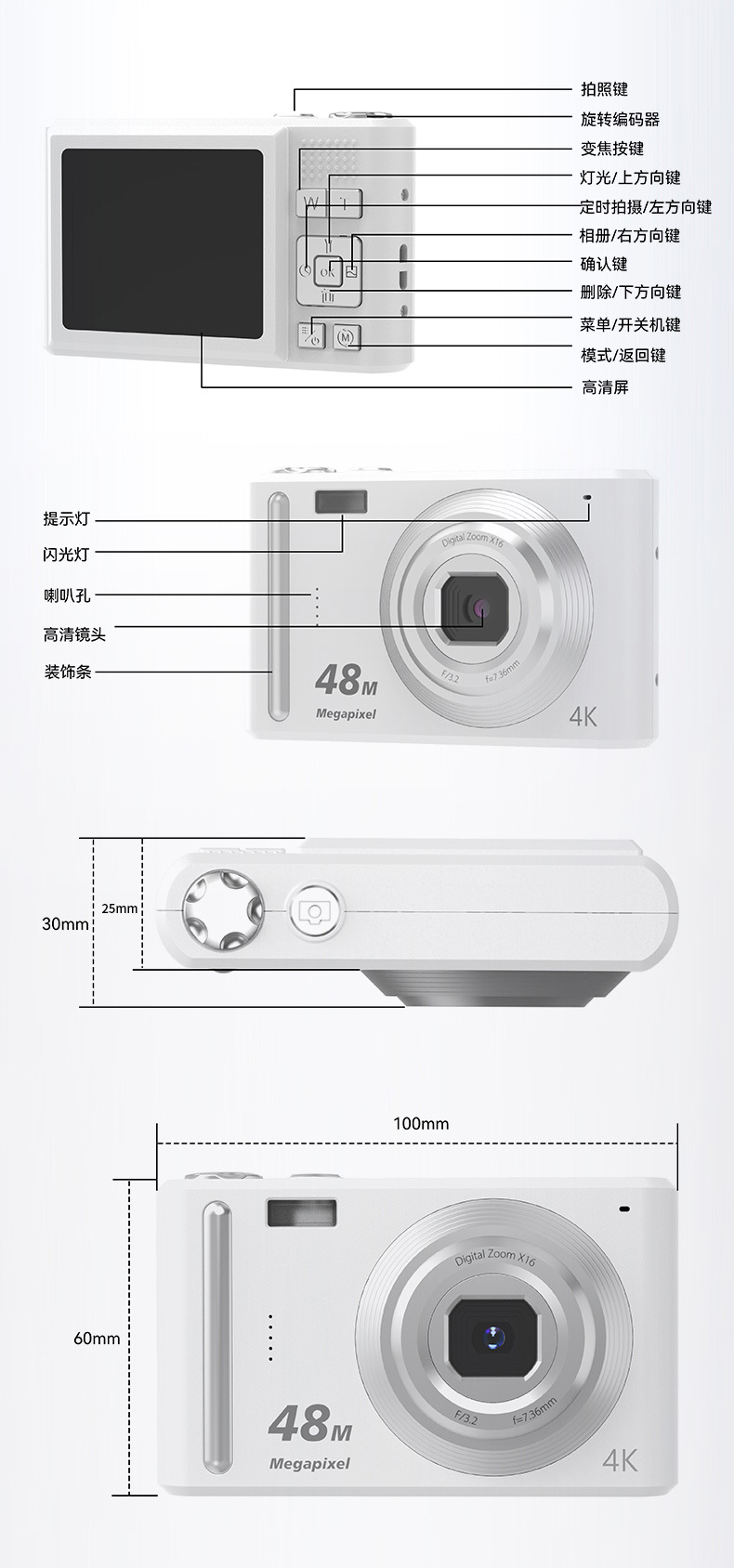 • 200W 고정 초점 흰색 + 64G 메모리 카드