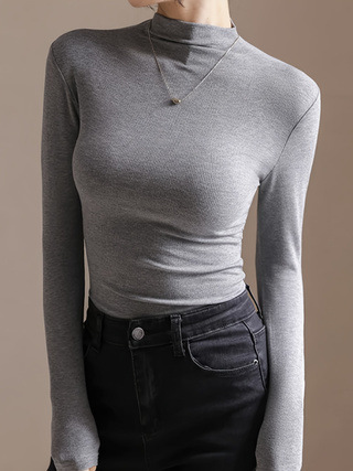 유럽과 미국의 플러스 사이즈 여성 하프 터틀넥 디자인 센스 주름 서양식 긴팔 여성용 티셔츠 가을과 겨울 새로운 슬림베이스 셔츠스토어 가기