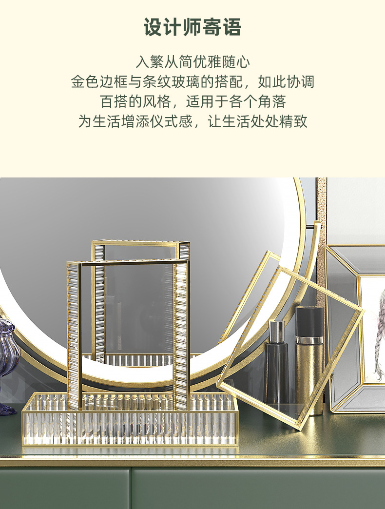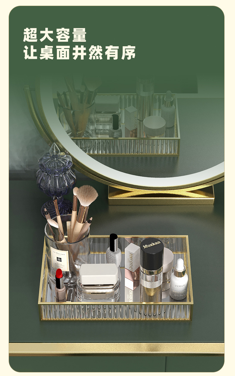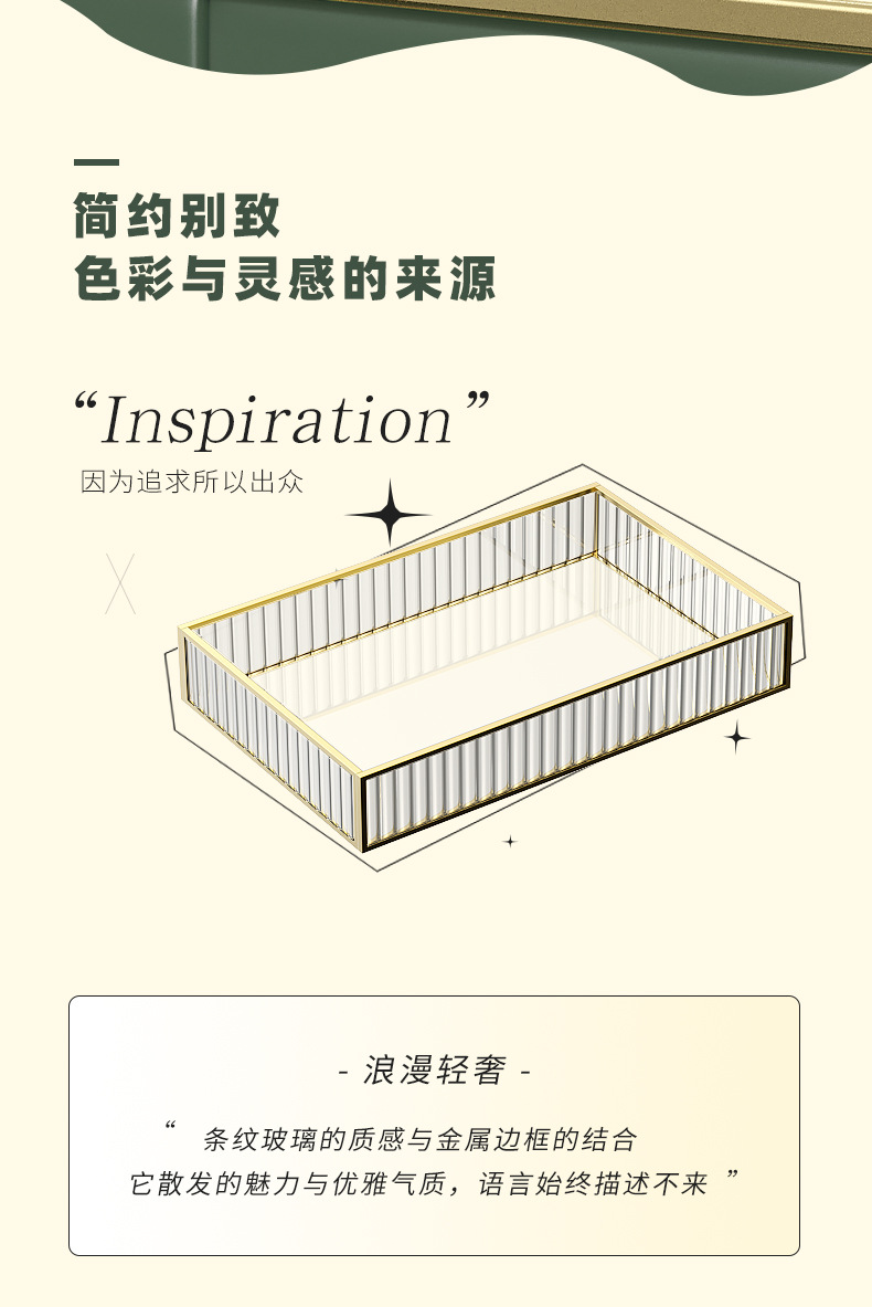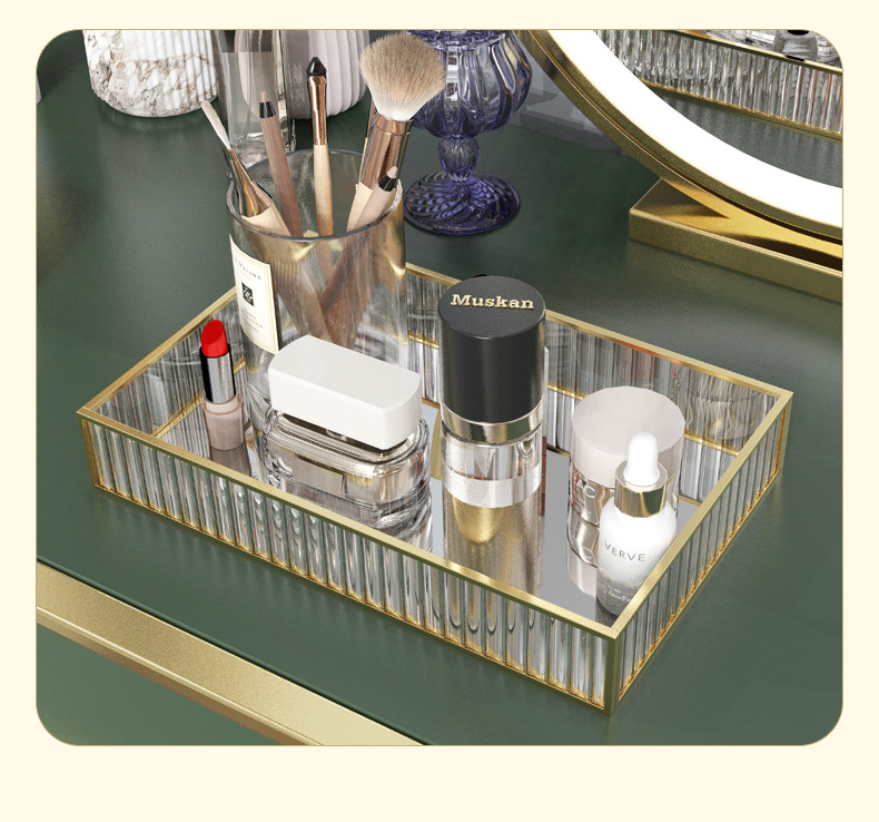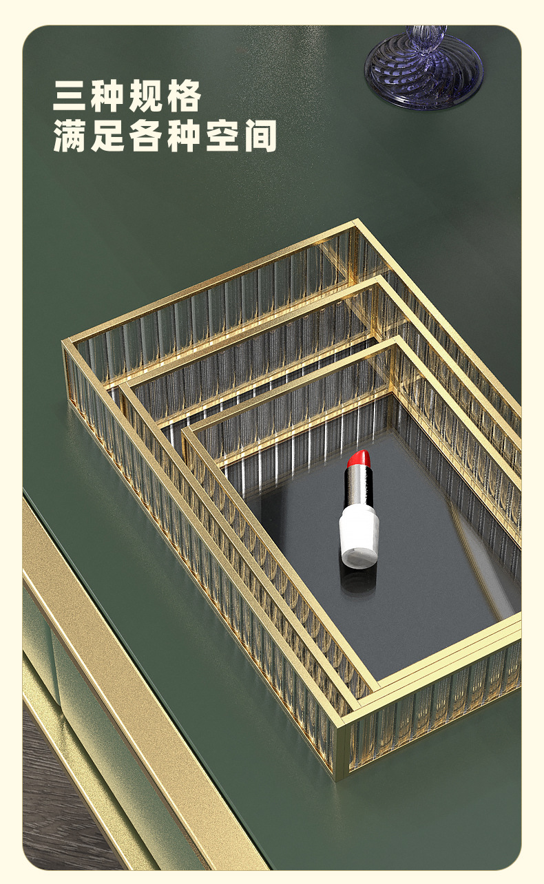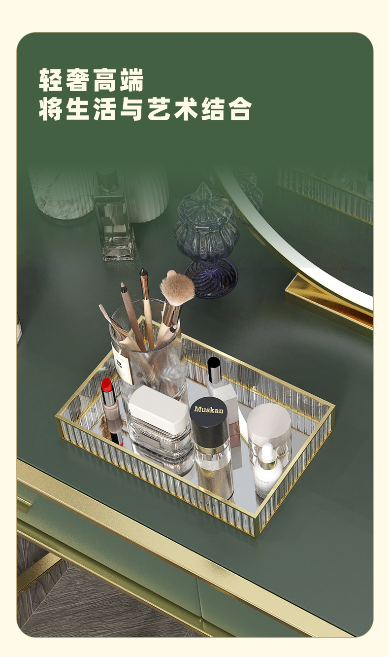 스트립 유리 빛 고급 화장품 보관 상자 트레이 입구 드레싱 테이블 직사각형 아로마 테라피 장식품 트레이 인 스타일