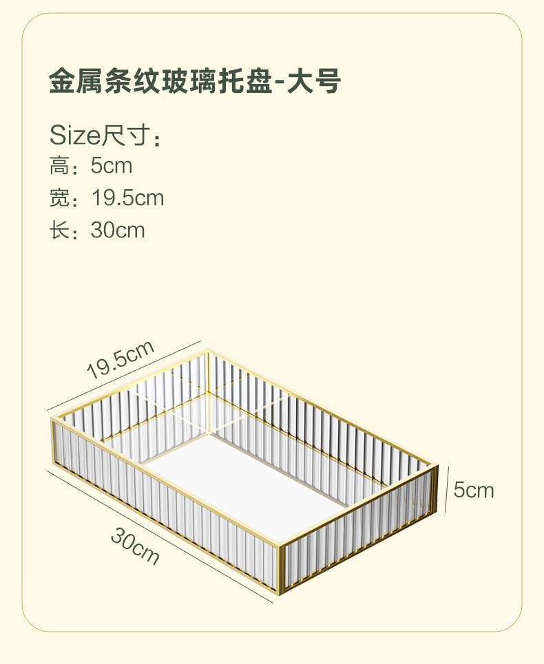 • 골드 메탈 스트라이프 유리 트레이-대형