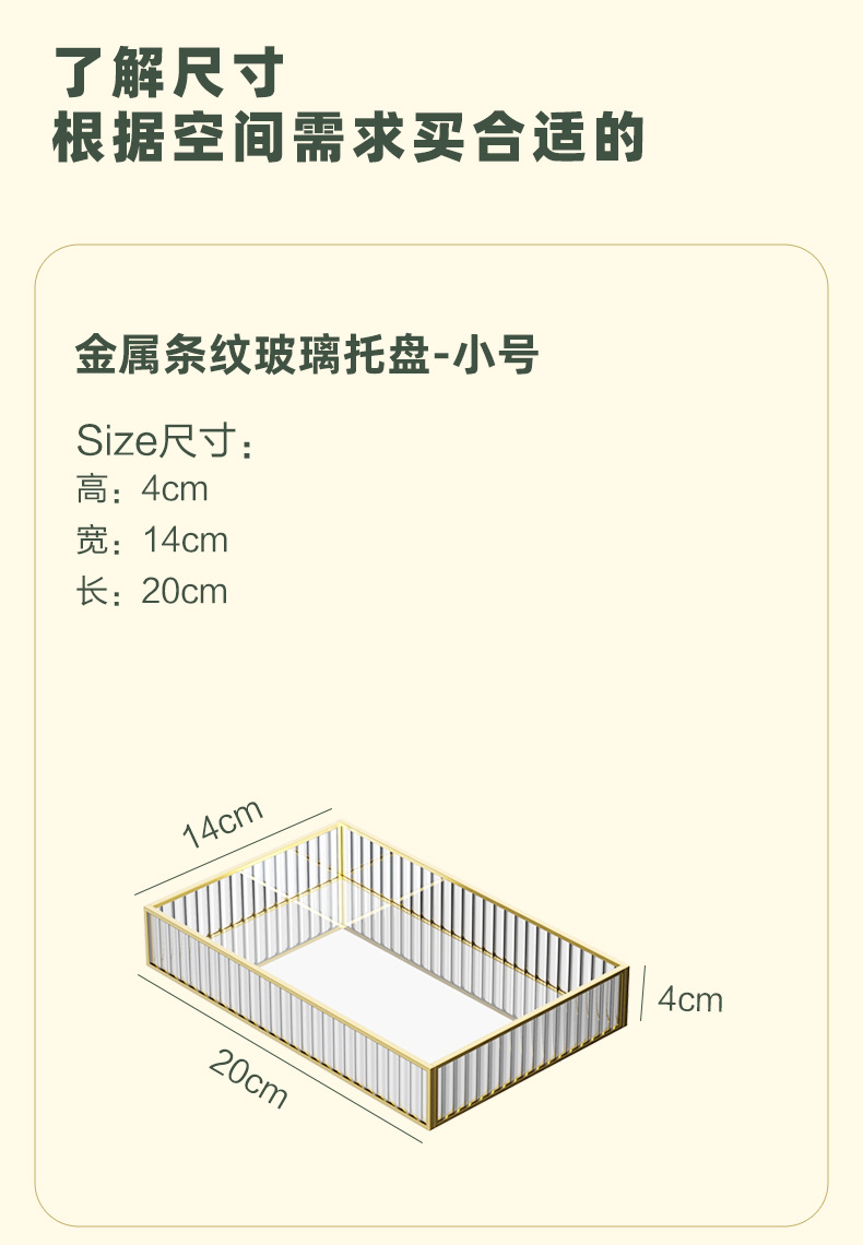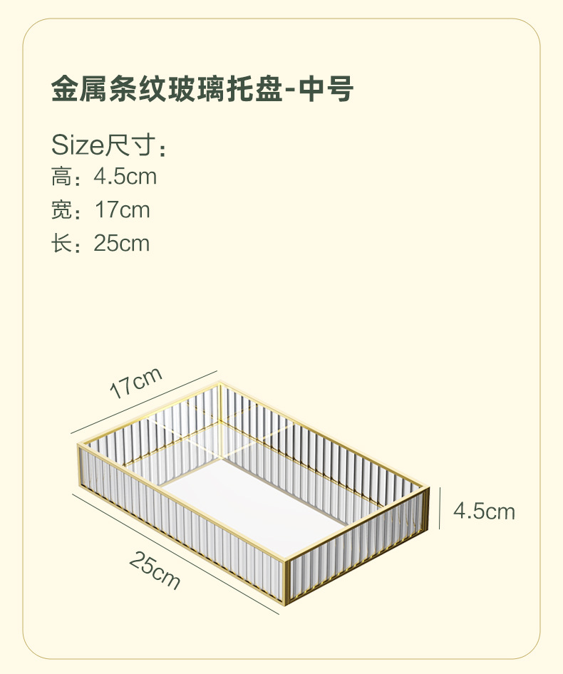 • 골드 메탈 스트라이프 유리 트레이-소형