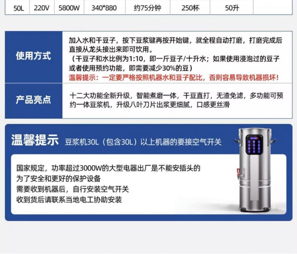 완전 자동 연삭 및 끓는 통합 필터가없는 대규모 대두 우유 기계 상업용 아침 식사 상점 대용량 정유 연삭스토어 가기