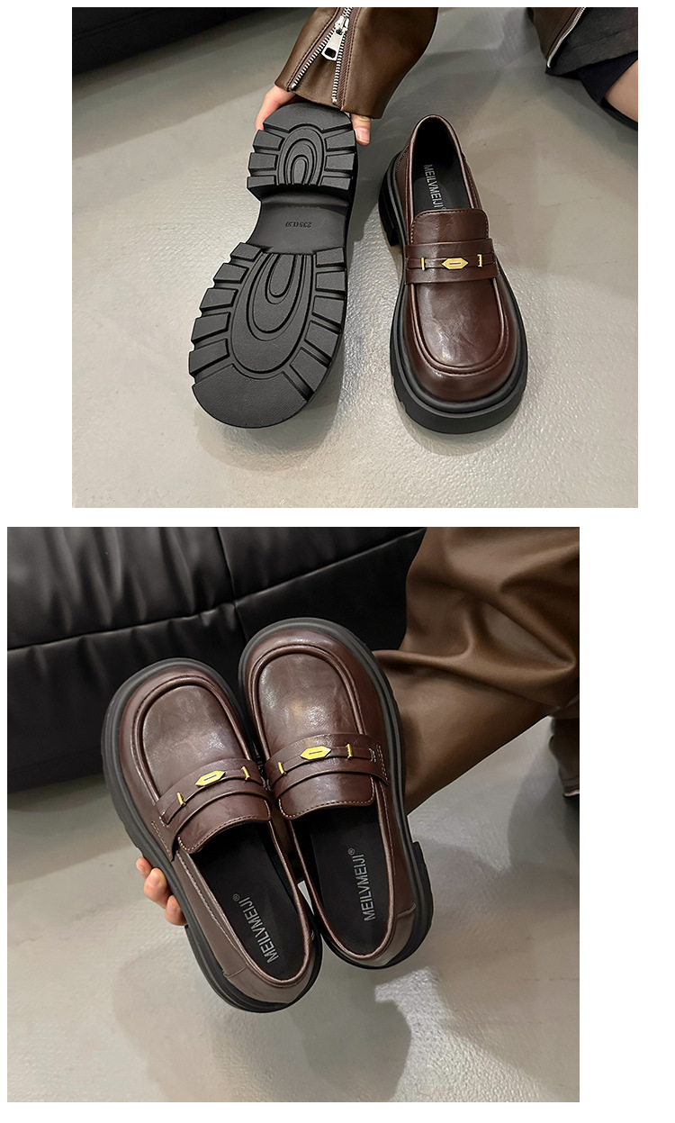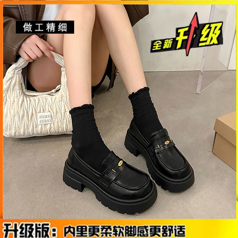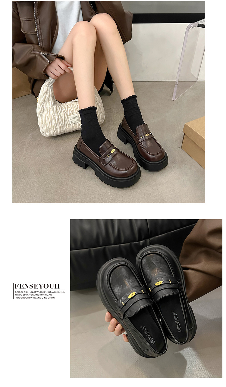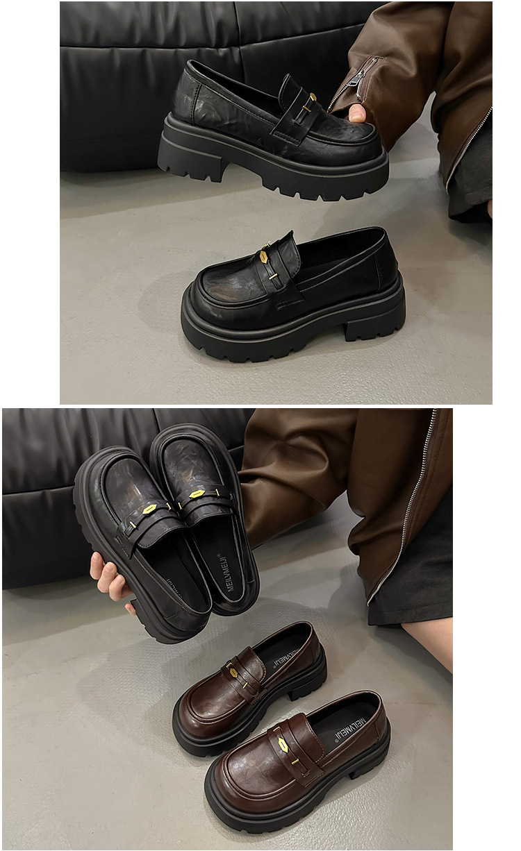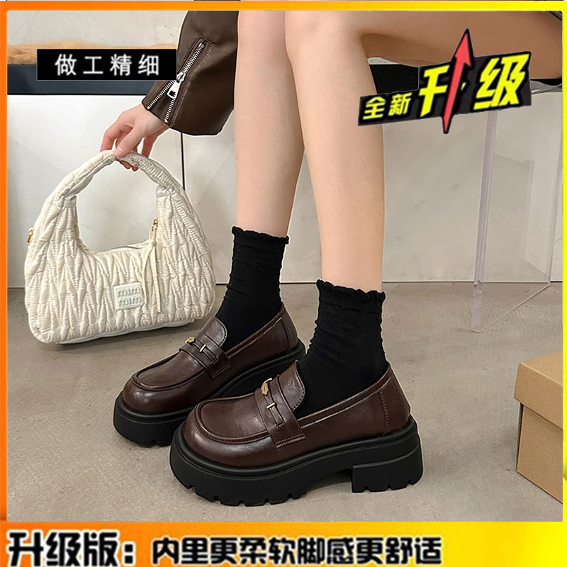 정품 가죽 플랫폼 Lefu 싱글 레이어 신발 여성 2025 봄 새로운 스타일 슬립-패션 올 매치 영국 스타일 JK 작은 가죽 신발스토어 가기