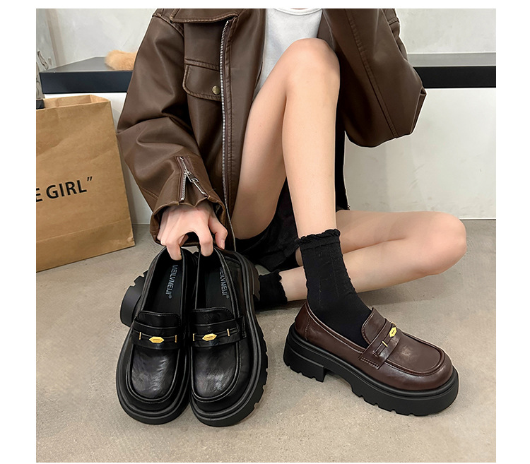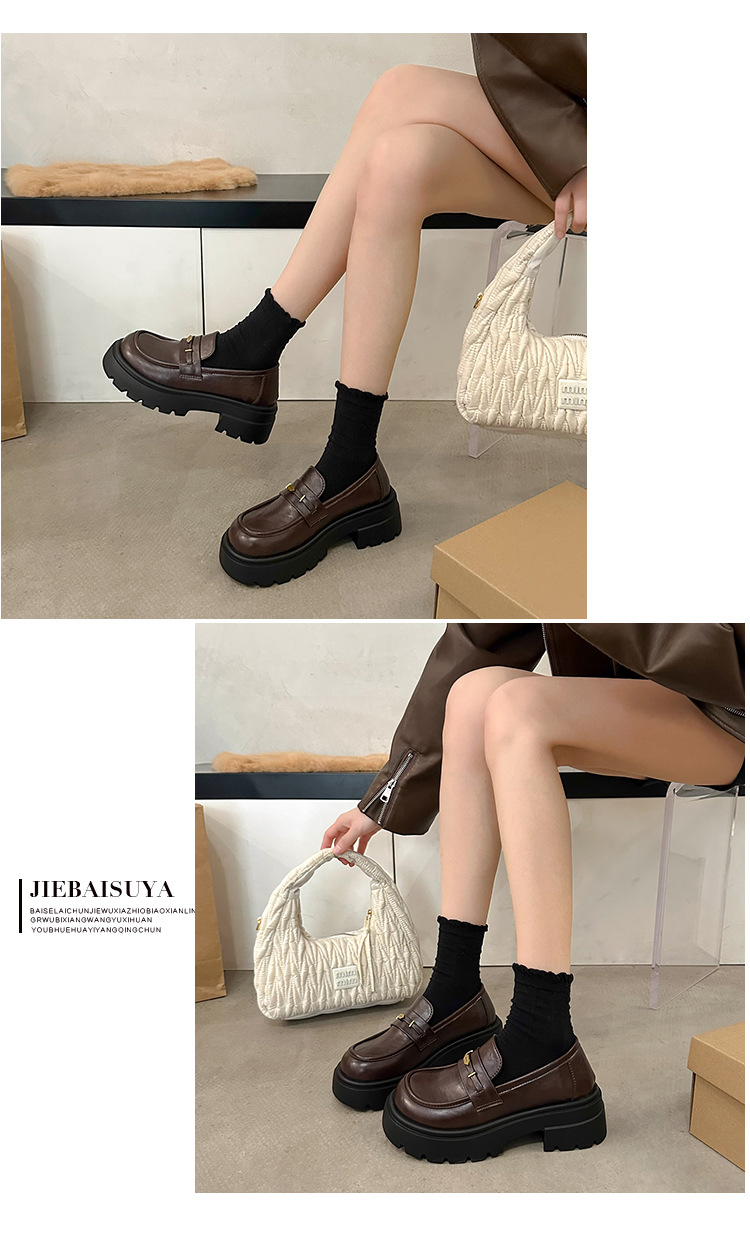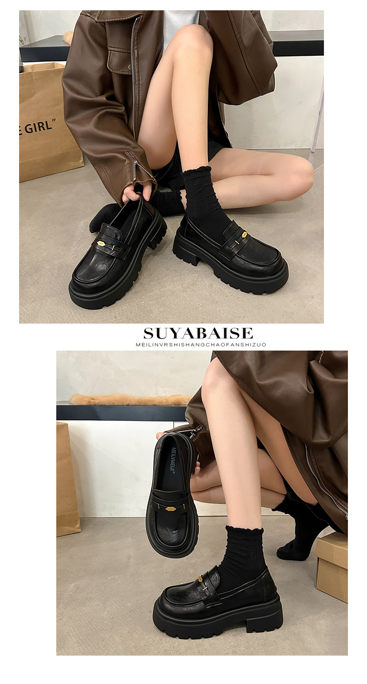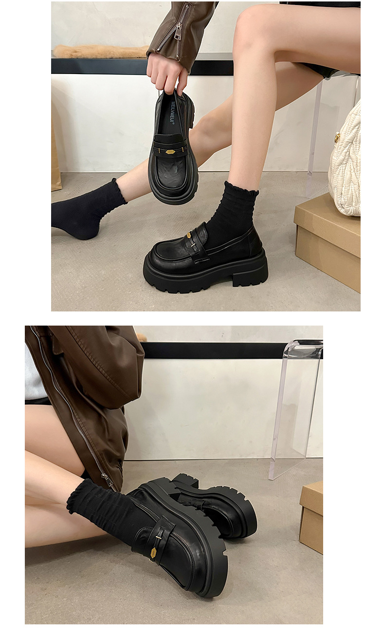 정품 가죽 플랫폼 Lefu 싱글 레이어 신발 여성 2025 봄 새로운 스타일 슬립-패션 올 매치 영국 스타일 JK 작은 가죽 신발스토어 가기