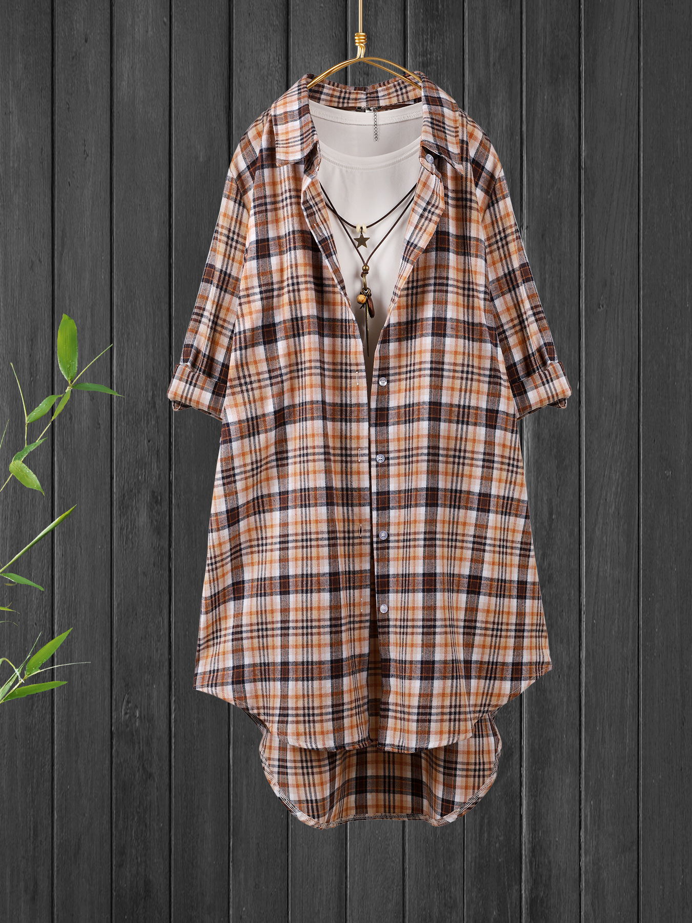 유럽과 미국의 플러스 사이즈 2025 봄 격자 무늬 셔츠 레트로 느슨한 여성용 긴팔 셔츠 올매치 캐주얼 셔츠 재킷스토어 가기