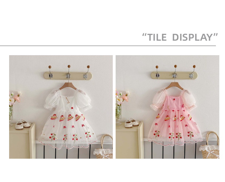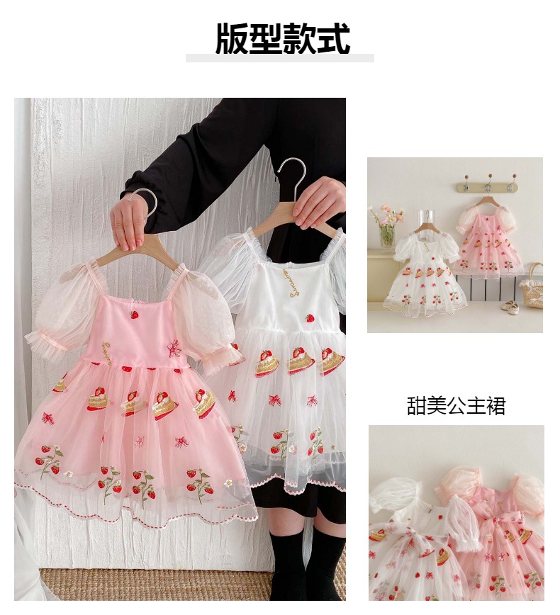 소녀 봄과 여름 짧은 소매 퍼프 소매 원피스 자수 꽃 달콤한 메쉬 공주 원피스스토어 가기