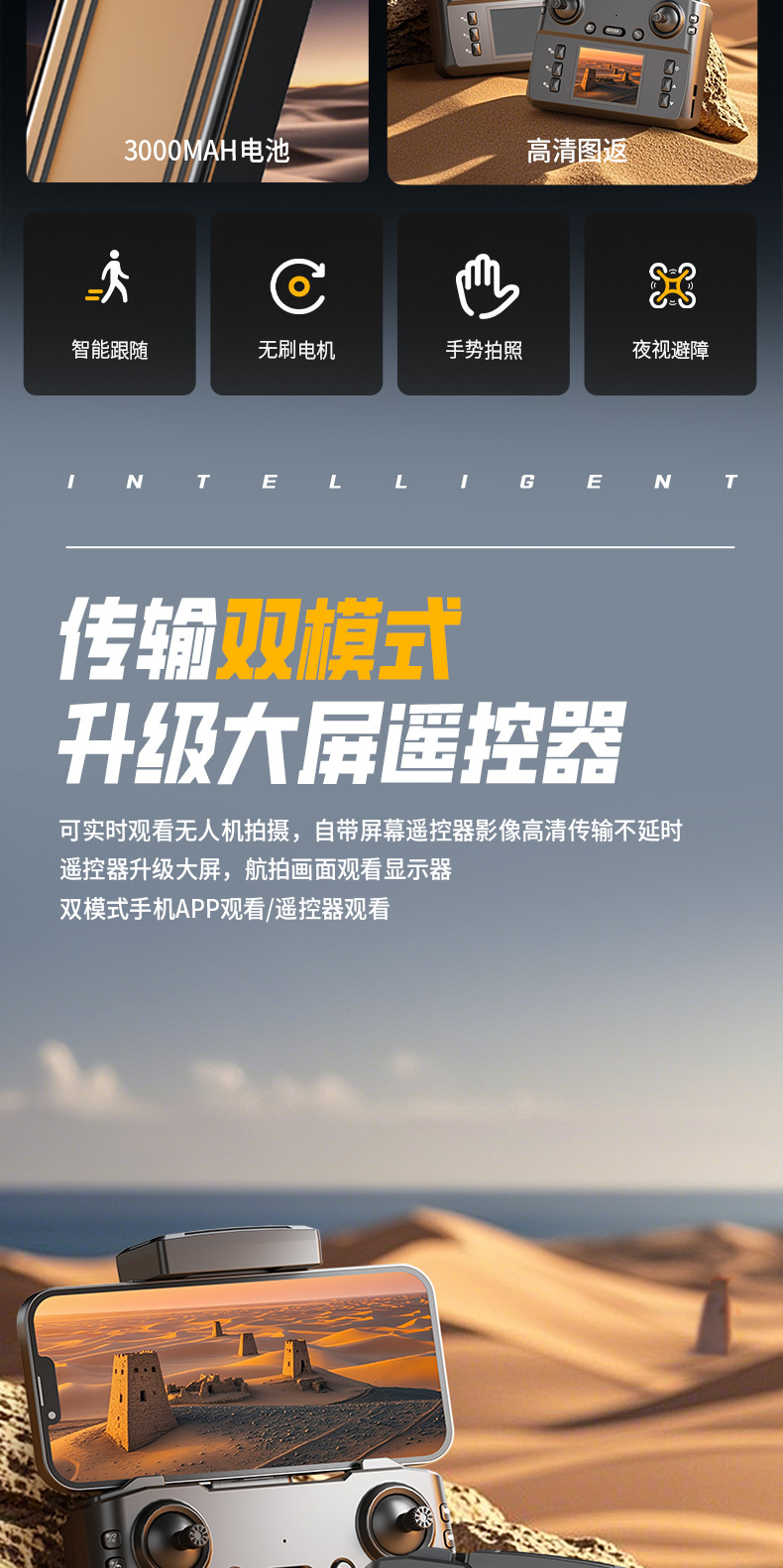 • 실버 그레이 터치 페인트 - 화면 제어 버전 [브러시리스 모터 + 광학 흐름 포지셔닝 + 4면 장애물 회피 + 전자 제어 듀얼 카메라]