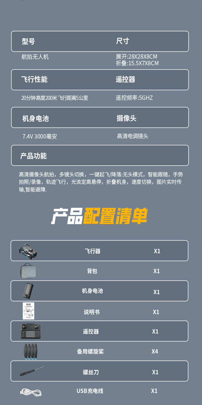 새로운 원격 제어 항공기 M107 화면 제어 브러시리스 장애물 회피 항공 사진 드론 광학 흐름 전기 조정 듀얼 카메라 쿼드 콥터