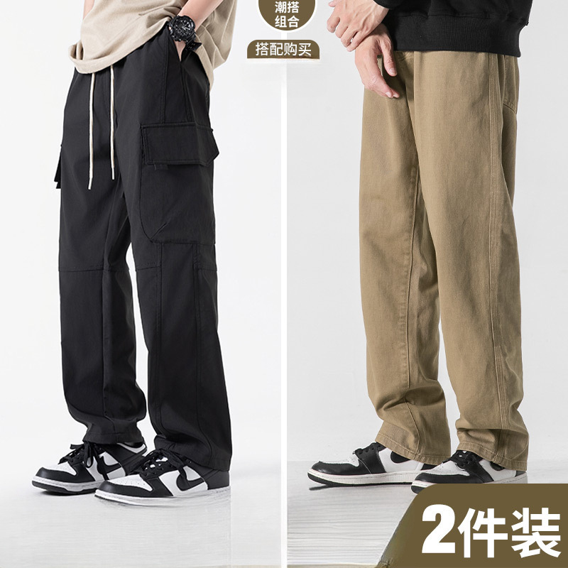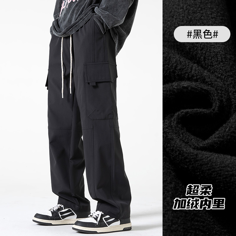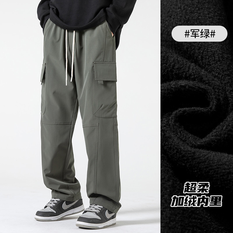 가을과 겨울 기모 군중 바지 소년 스트레이트 바지 봄과 여름 캐주얼 미국 하이 스트리트 충전 바지