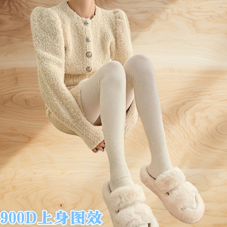 일본면 발 미끄럼 방지 봄과 가을 두꺼운 비 기모 레깅스 오트밀 흰색 마이크로 압력 스레드 팬티 스타킹