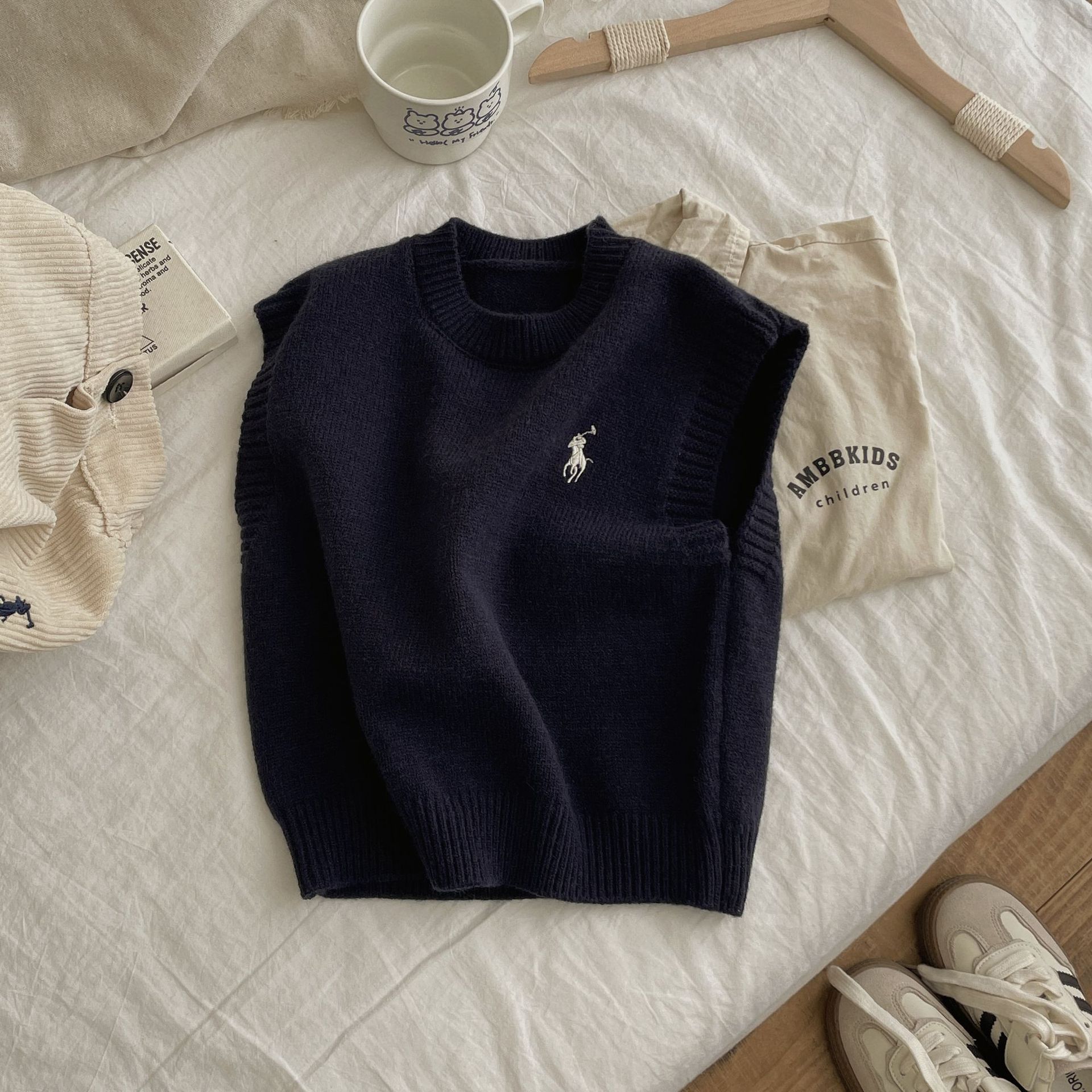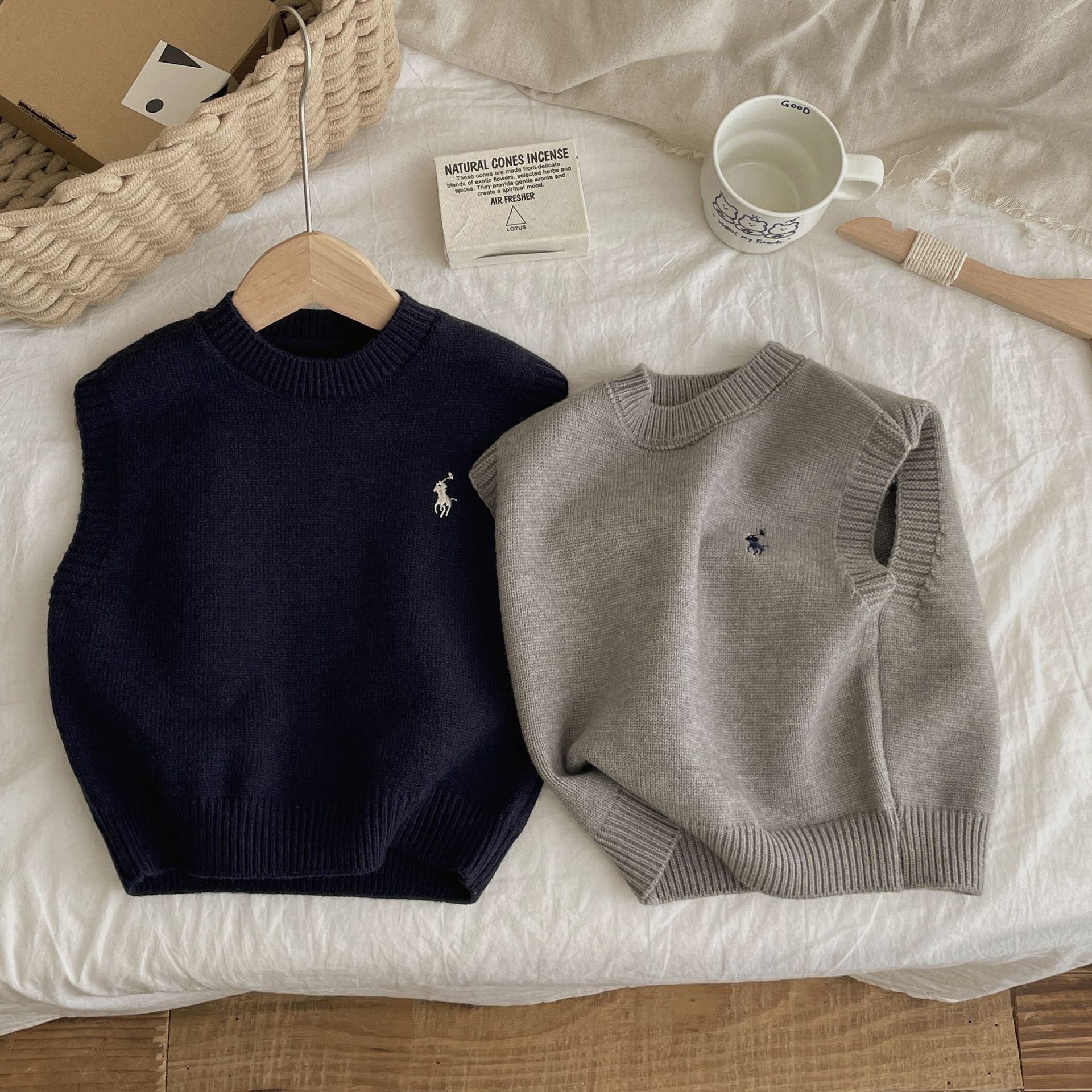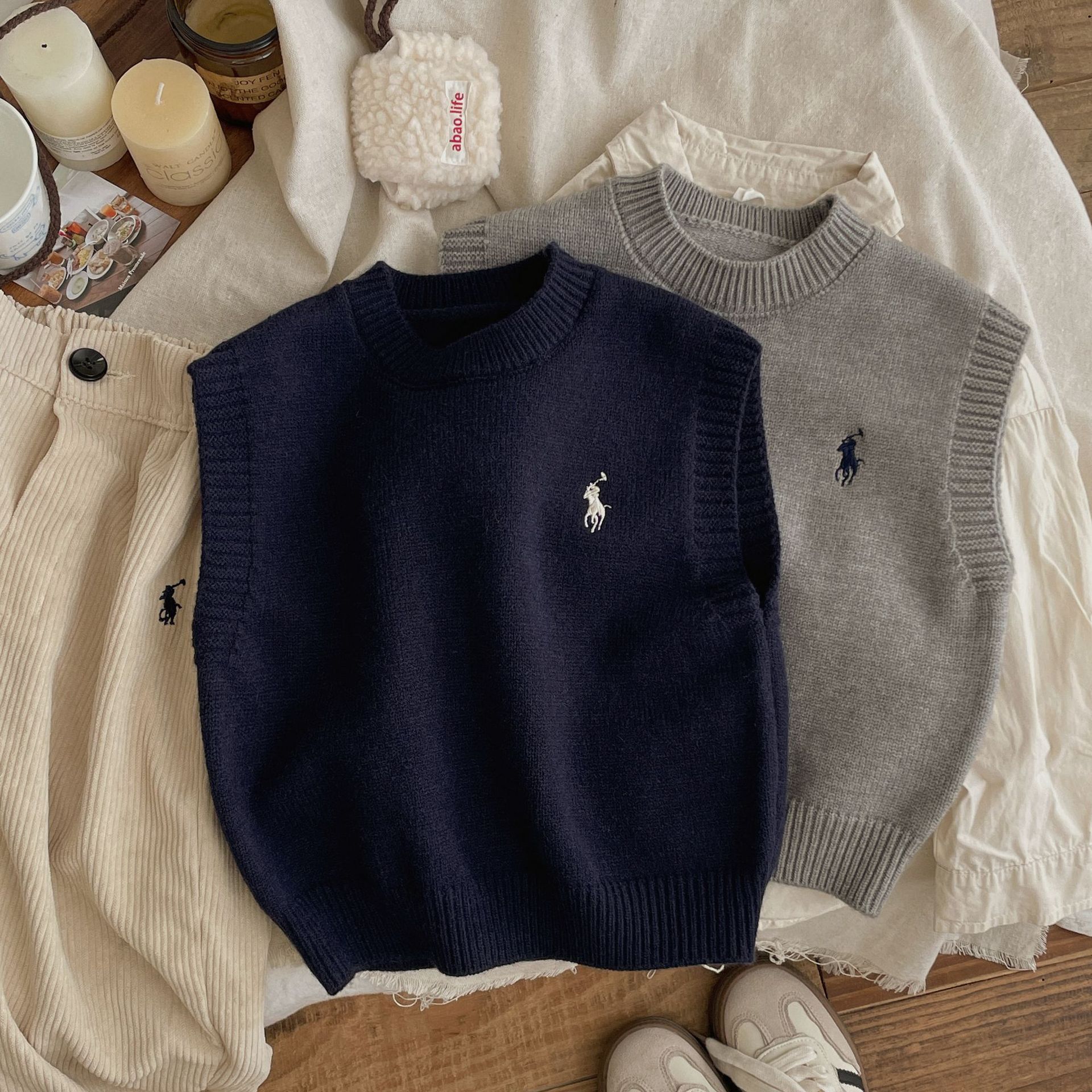 봄과 가을 새로운 어린이 조끼 가을 남녀 솔리드 컬러 라운드 넥 조끼 아기의 풀오버 올 매치 니트 조끼스토어 가기
