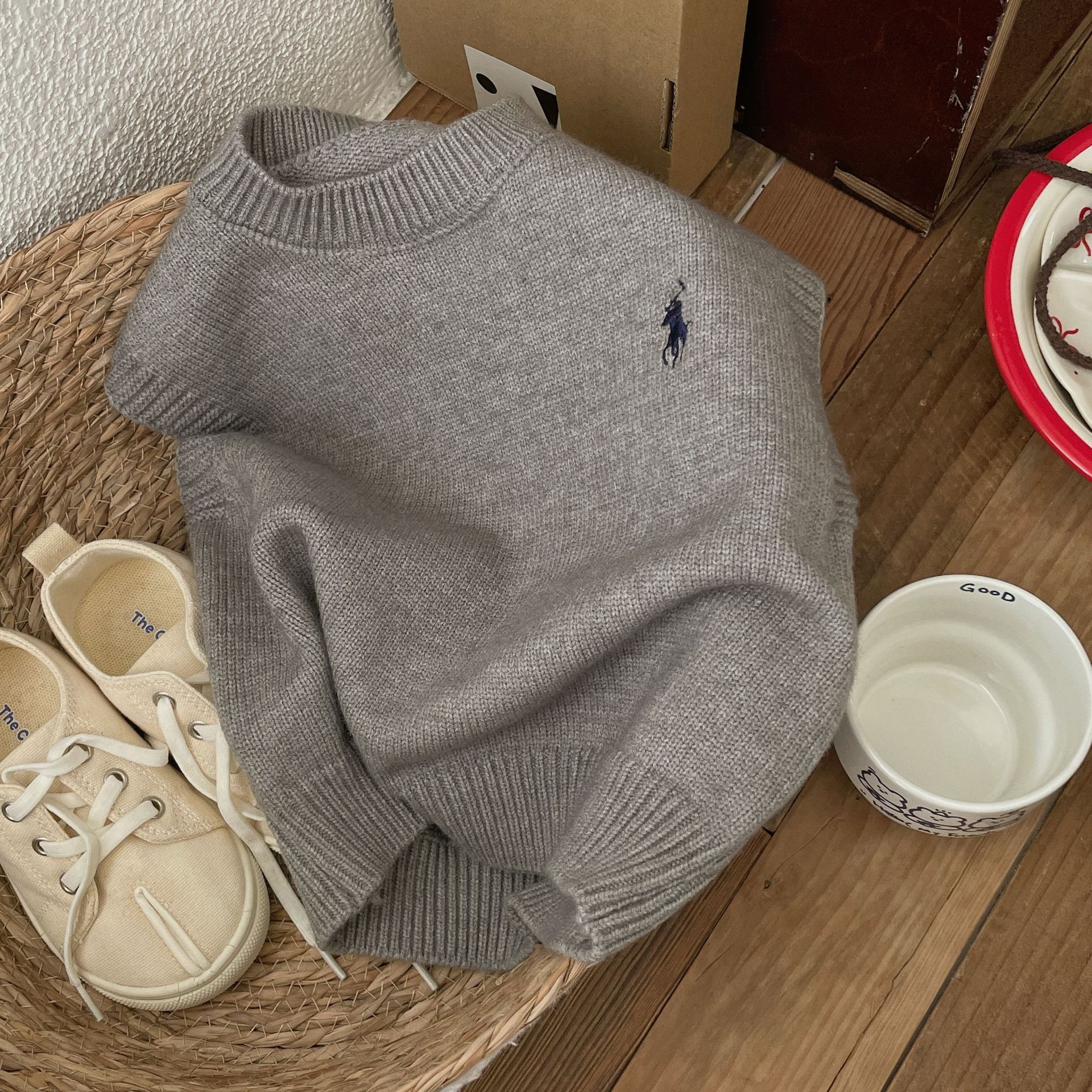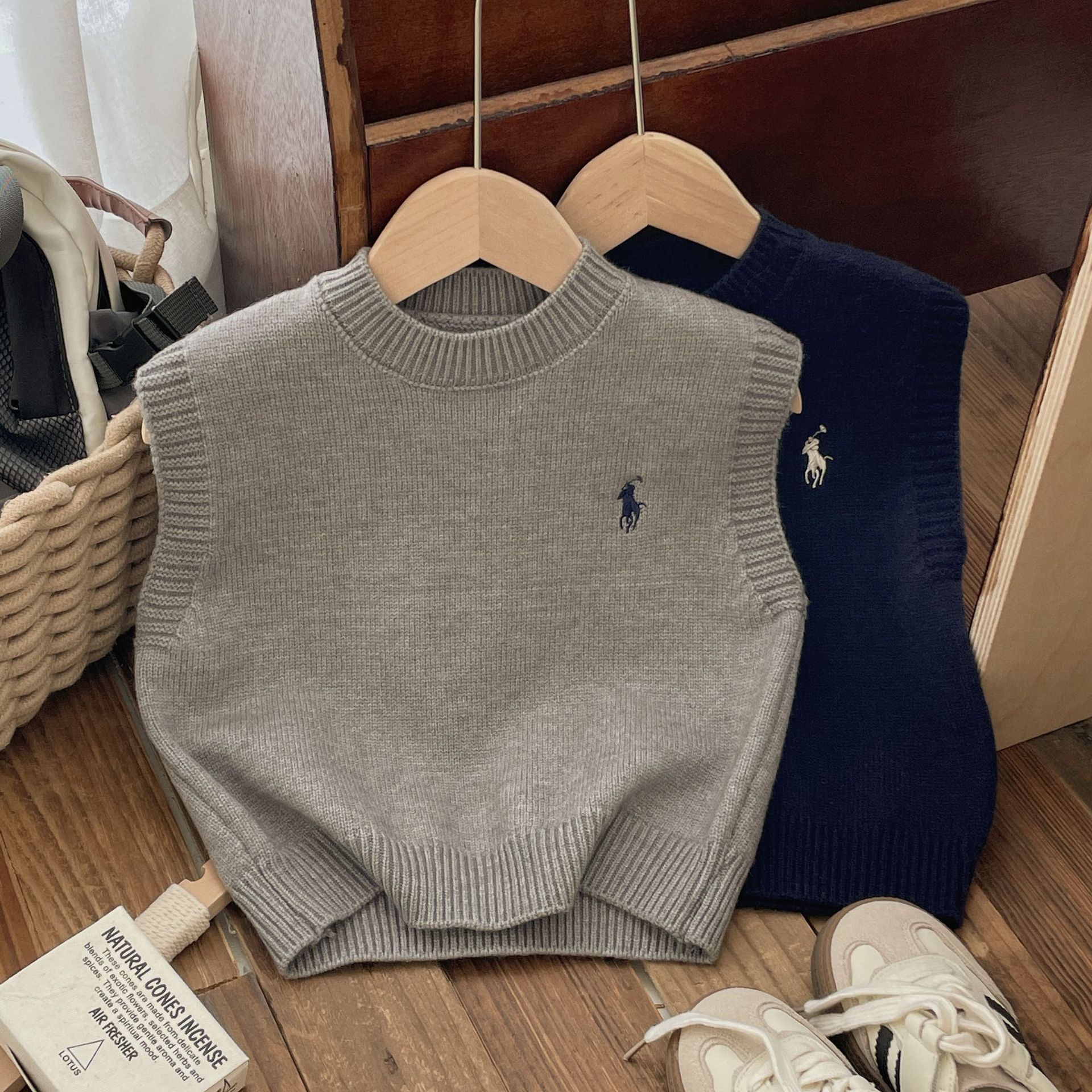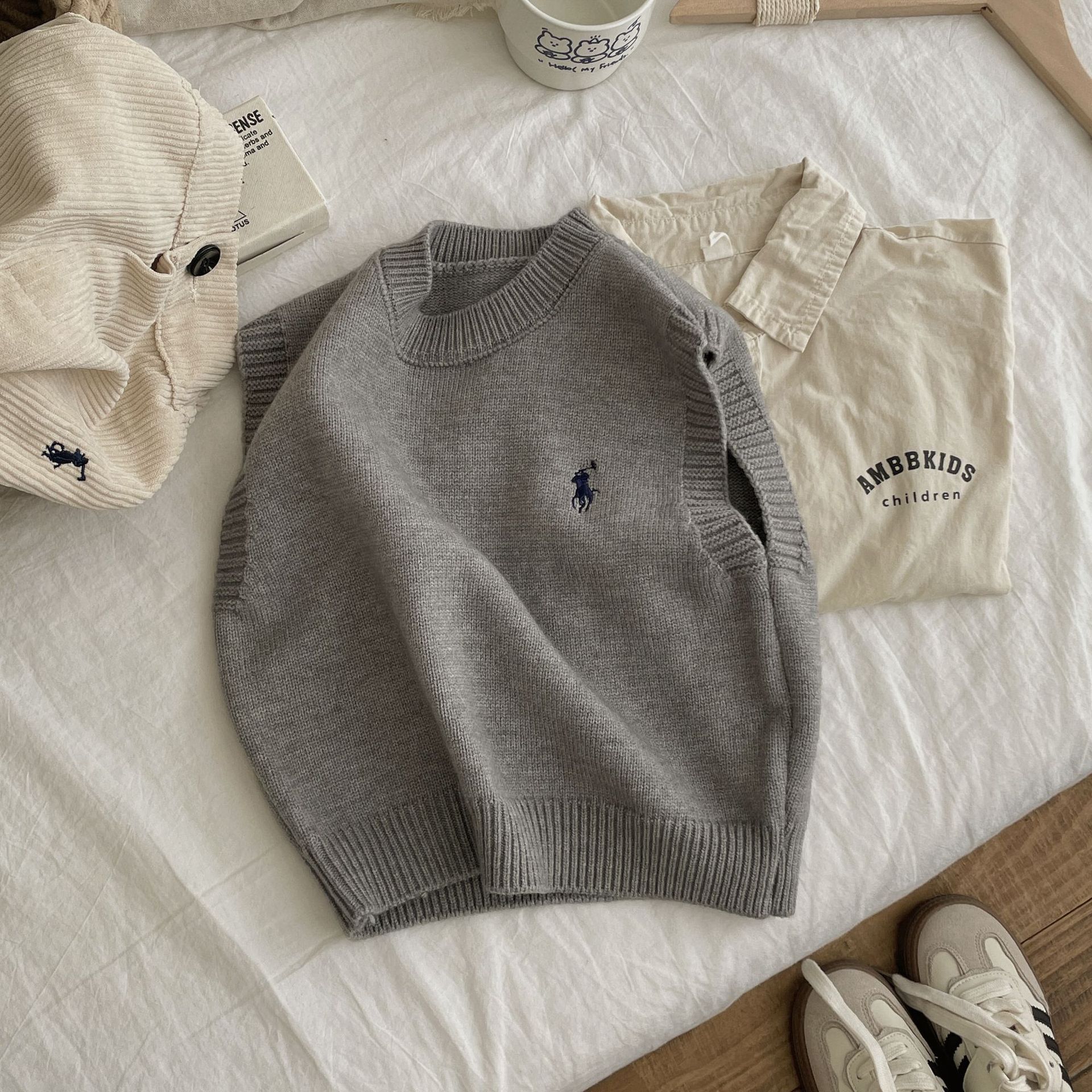 봄과 가을 새로운 어린이 조끼 가을 남녀 솔리드 컬러 라운드 넥 조끼 아기의 풀오버 올 매치 니트 조끼스토어 가기