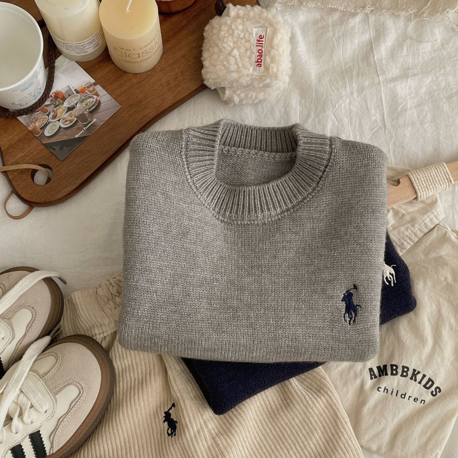 봄과 가을 새로운 어린이 조끼 가을 남녀 솔리드 컬러 라운드 넥 조끼 아기의 풀오버 올 매치 니트 조끼