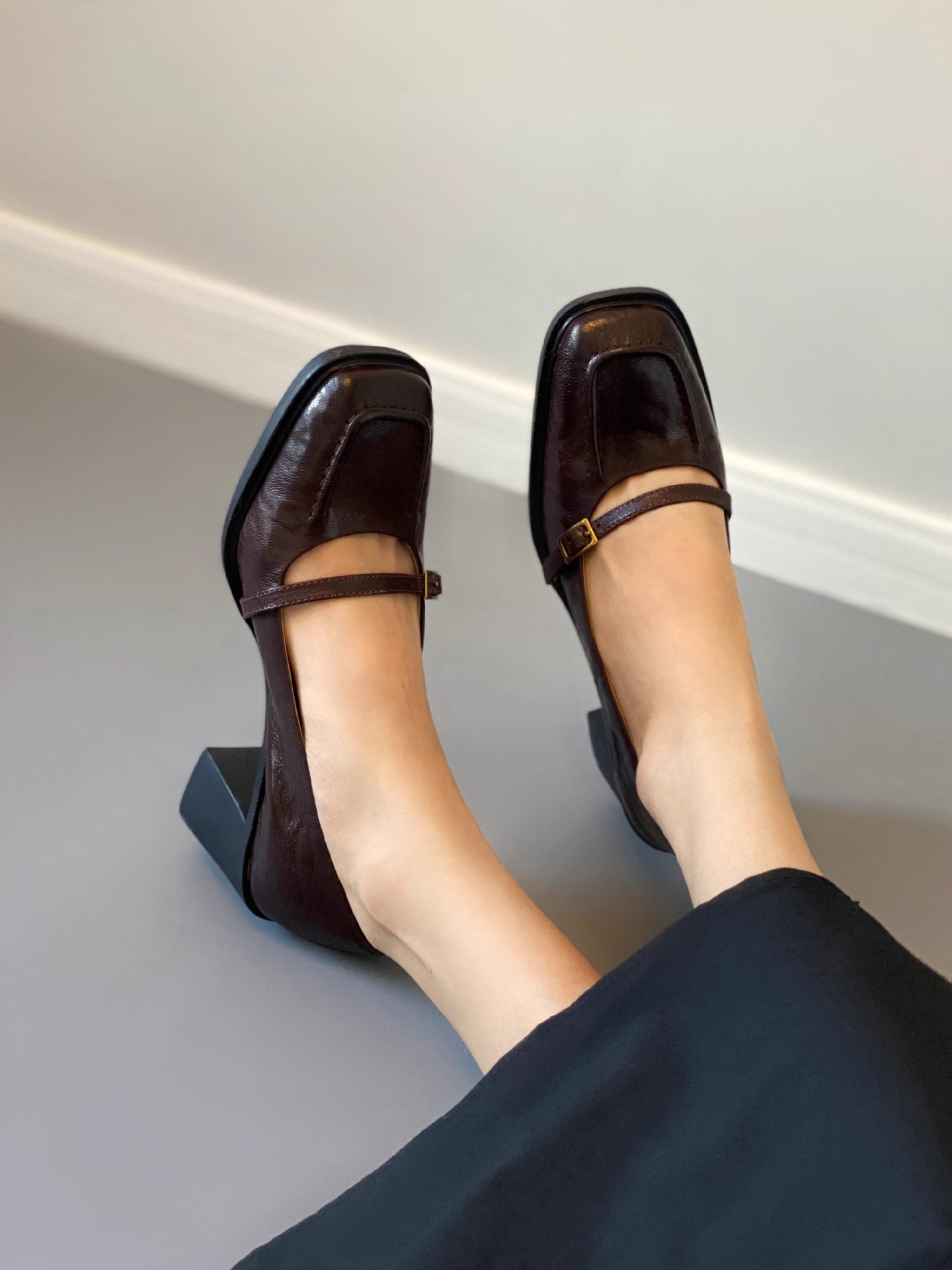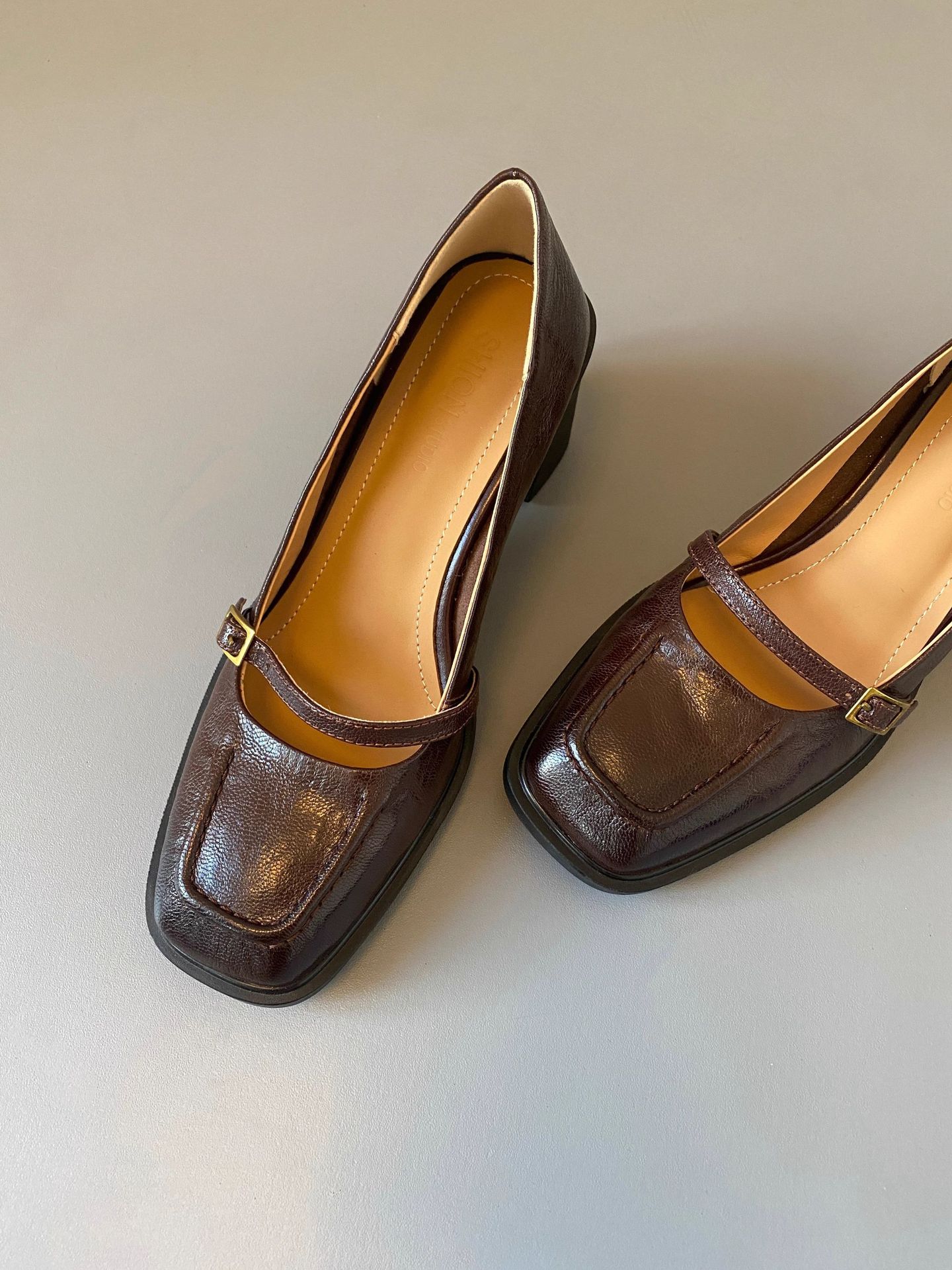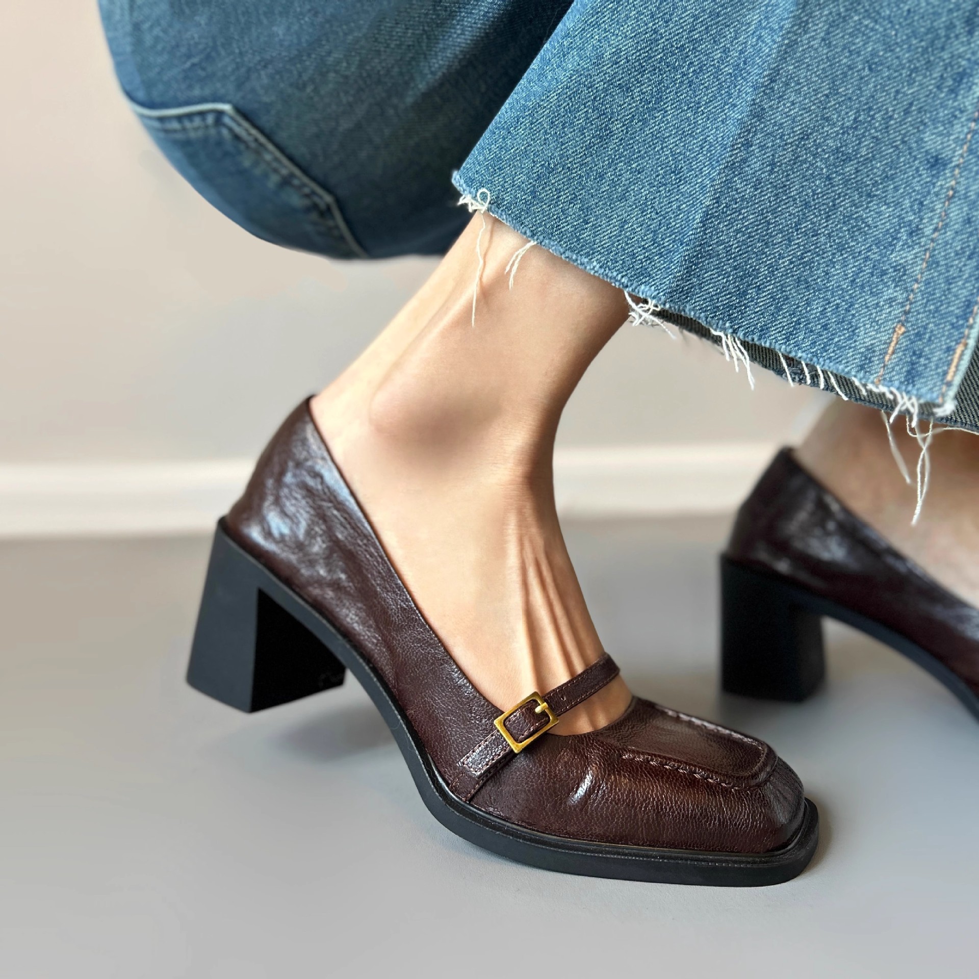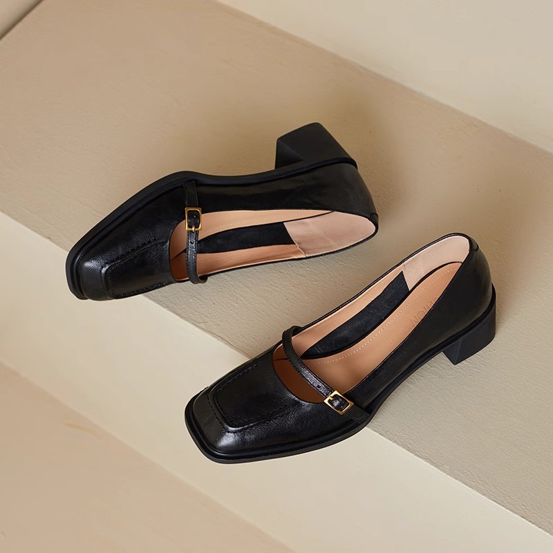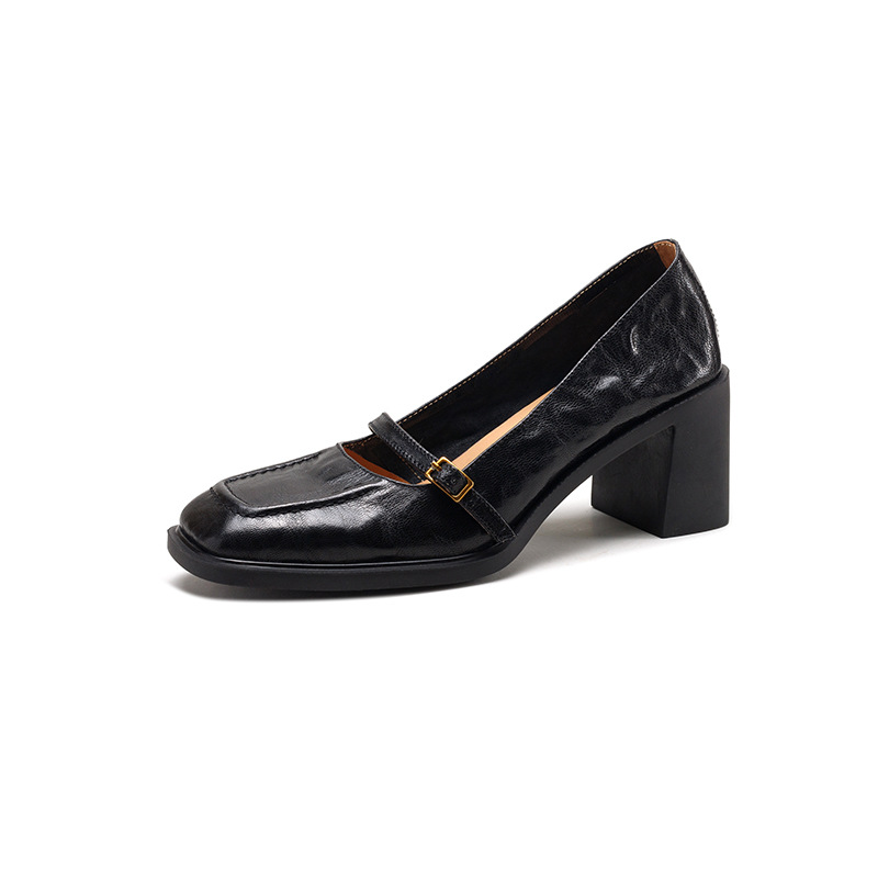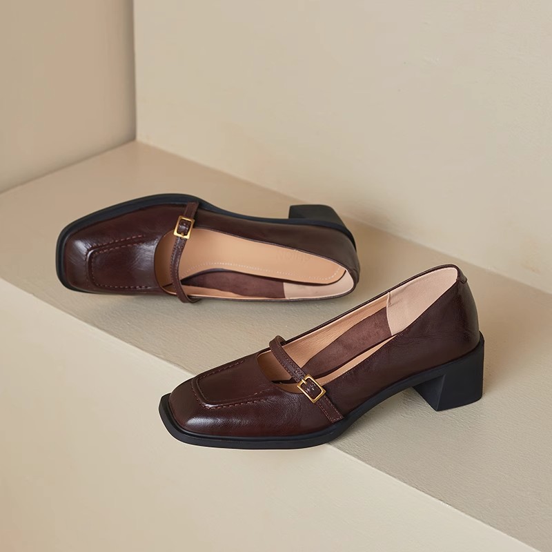 조용한 하이힐 작은 가죽 신발 여성용 다크 브라운 레트로 프렌치 하이힐 2025 새로운 통근 스타일 두꺼운 굽 신발스토어 가기