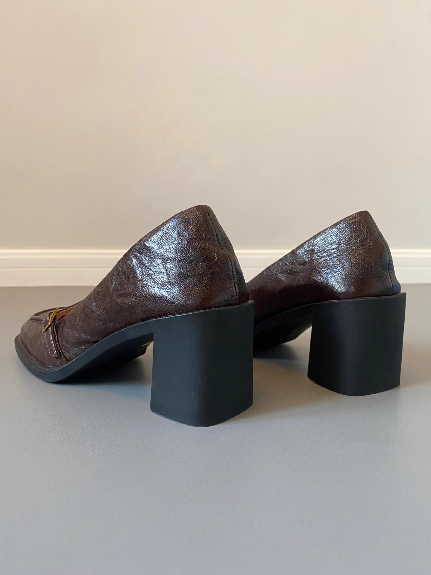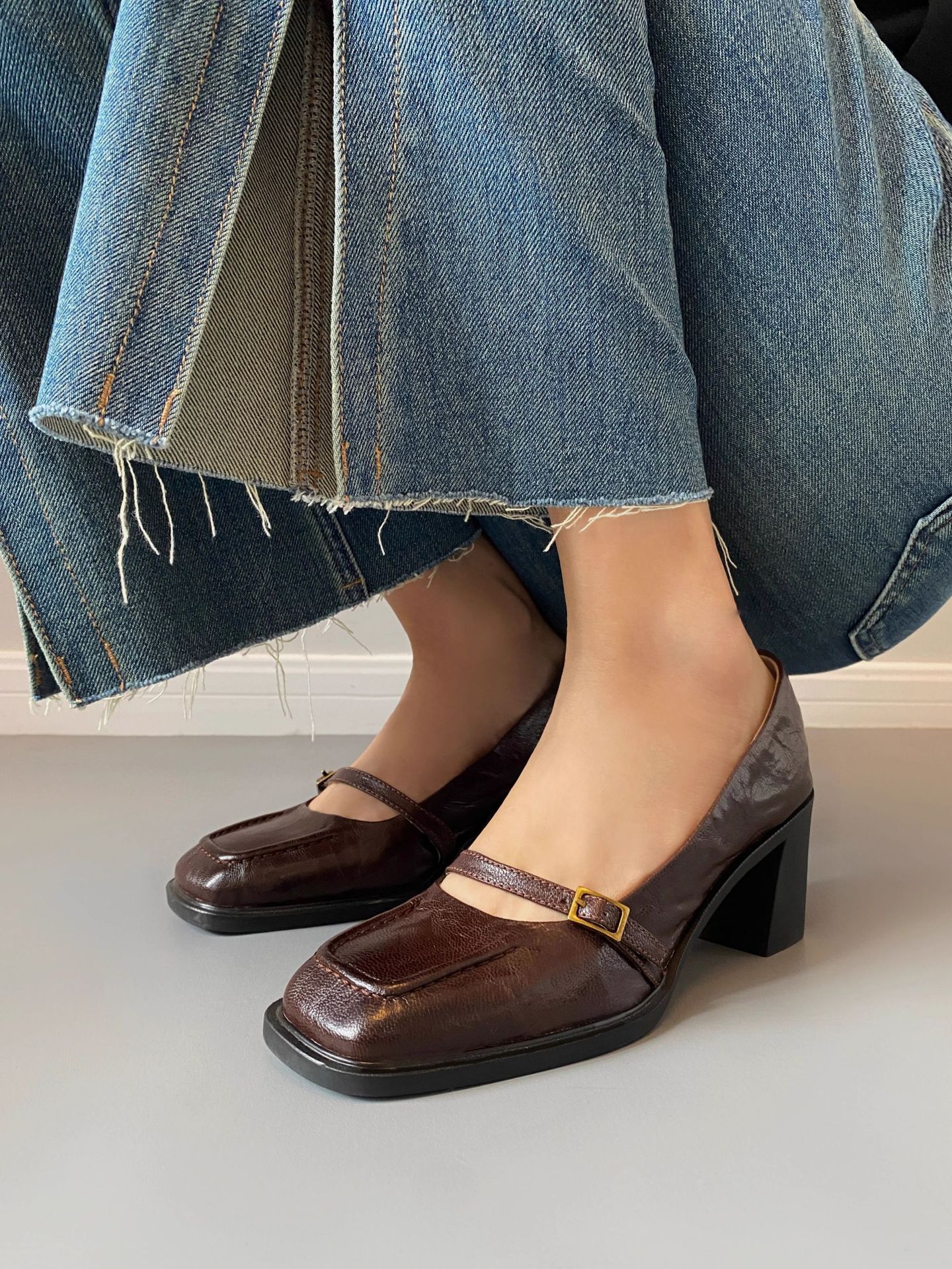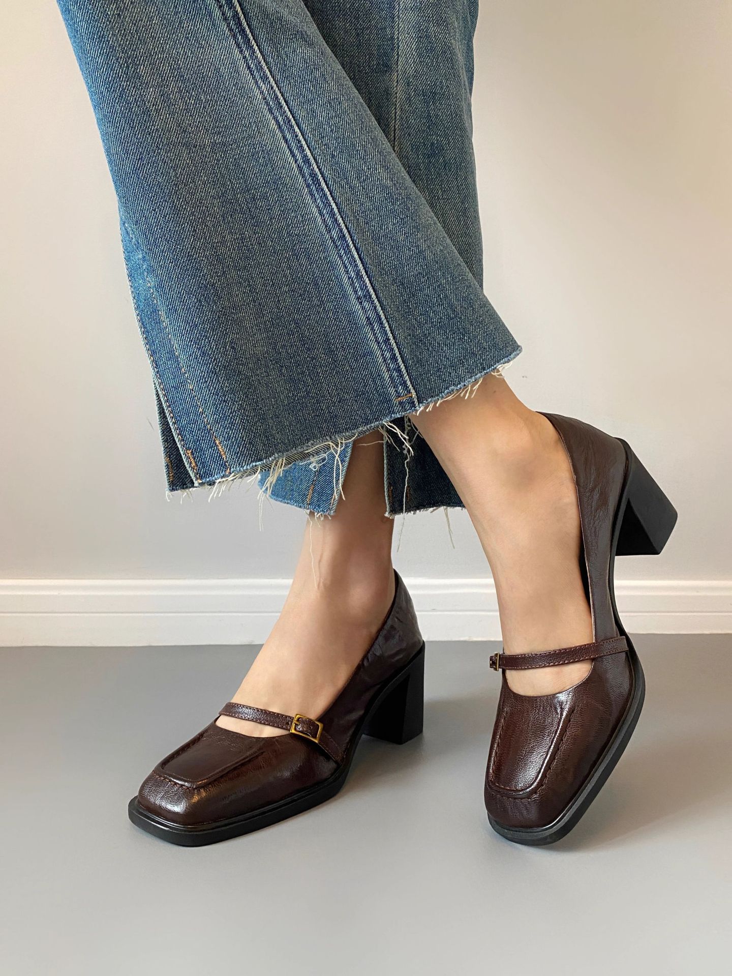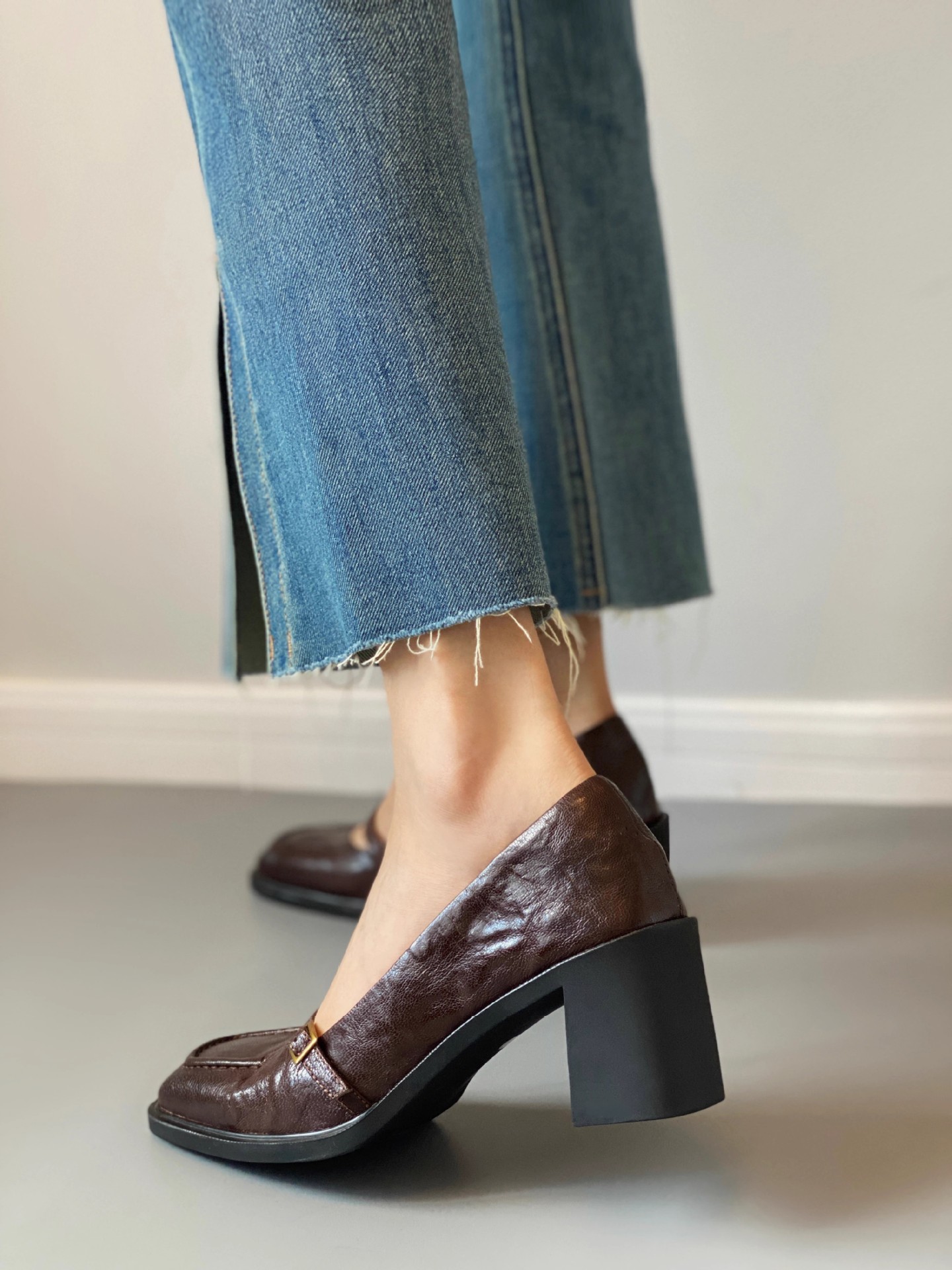 조용한 하이힐 작은 가죽 신발 여성용 다크 브라운 레트로 프렌치 하이힐 2025 새로운 통근 스타일 두꺼운 굽 신발스토어 가기
